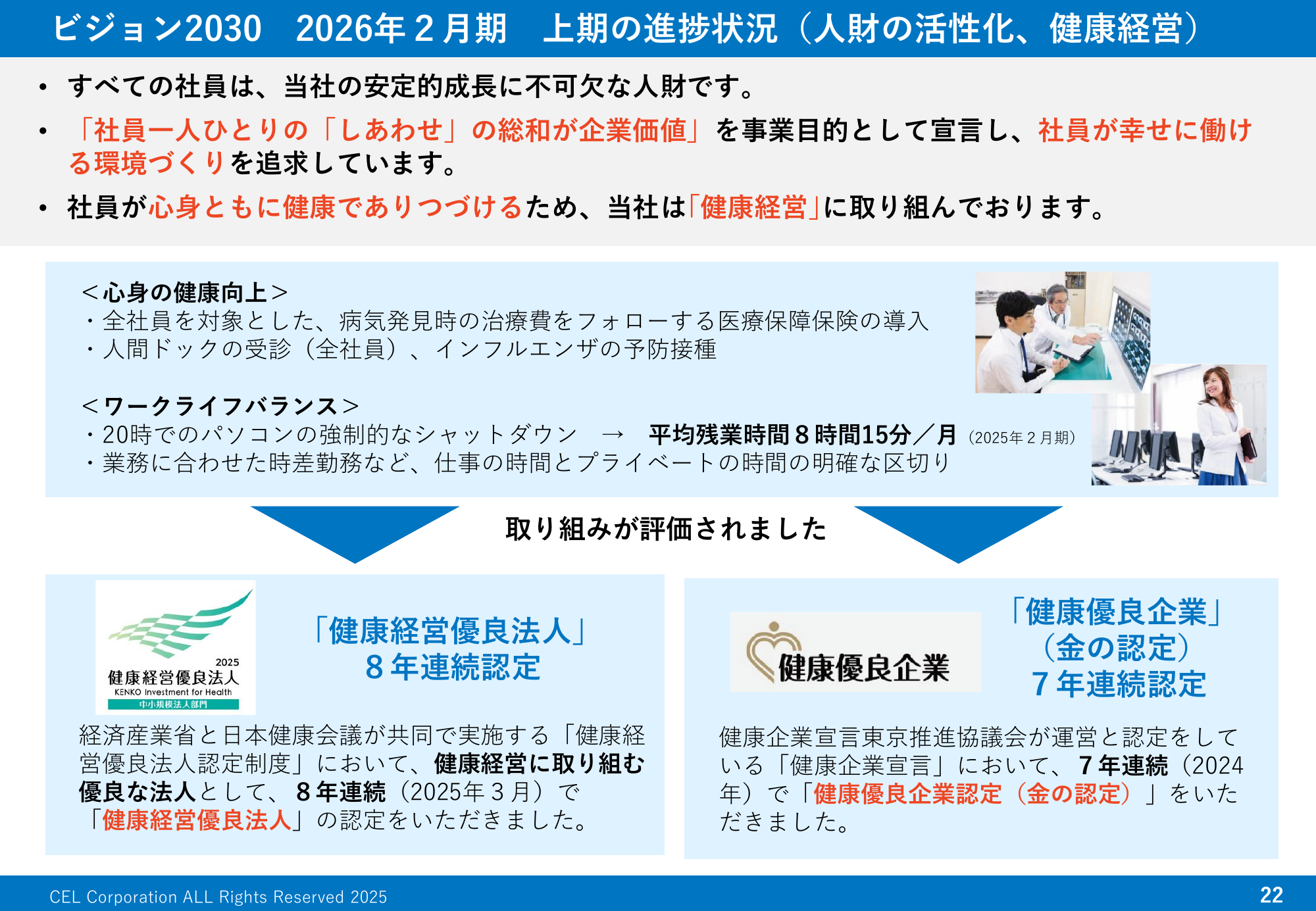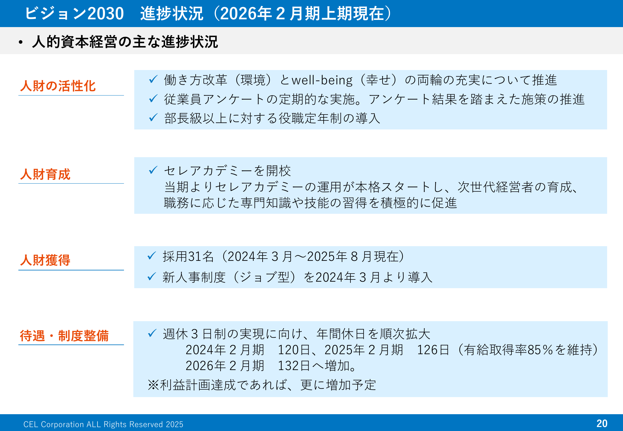 ビジョン2030 2026年2月期 上期の進捗状況(人財の活性化、健康経営)