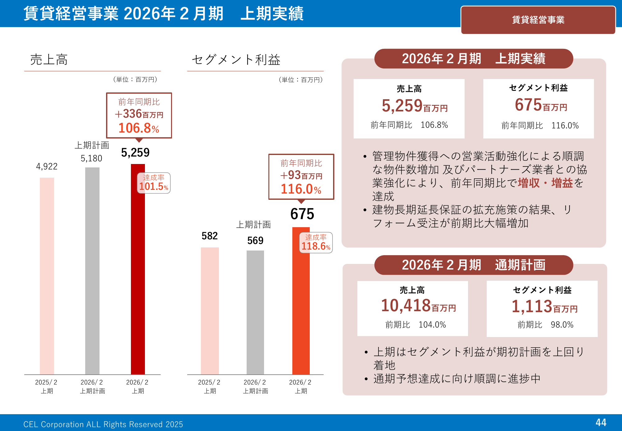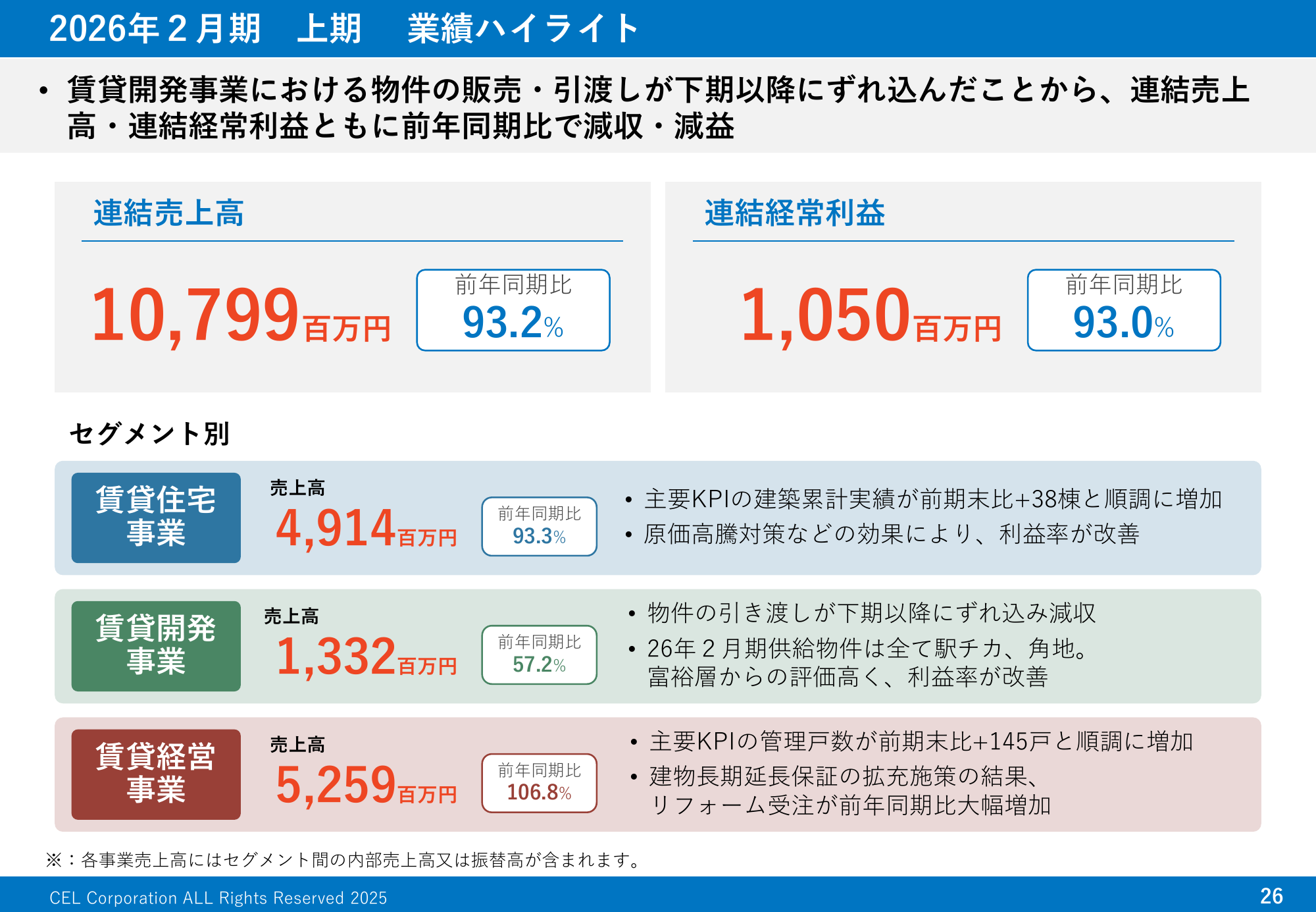 賃貸経営事業 2026年2月期 上期実績
