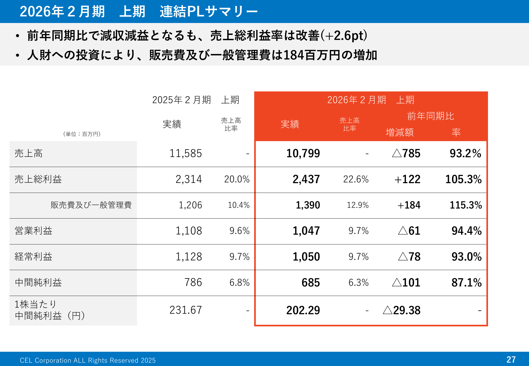 2026年2月期 上期 決算説明