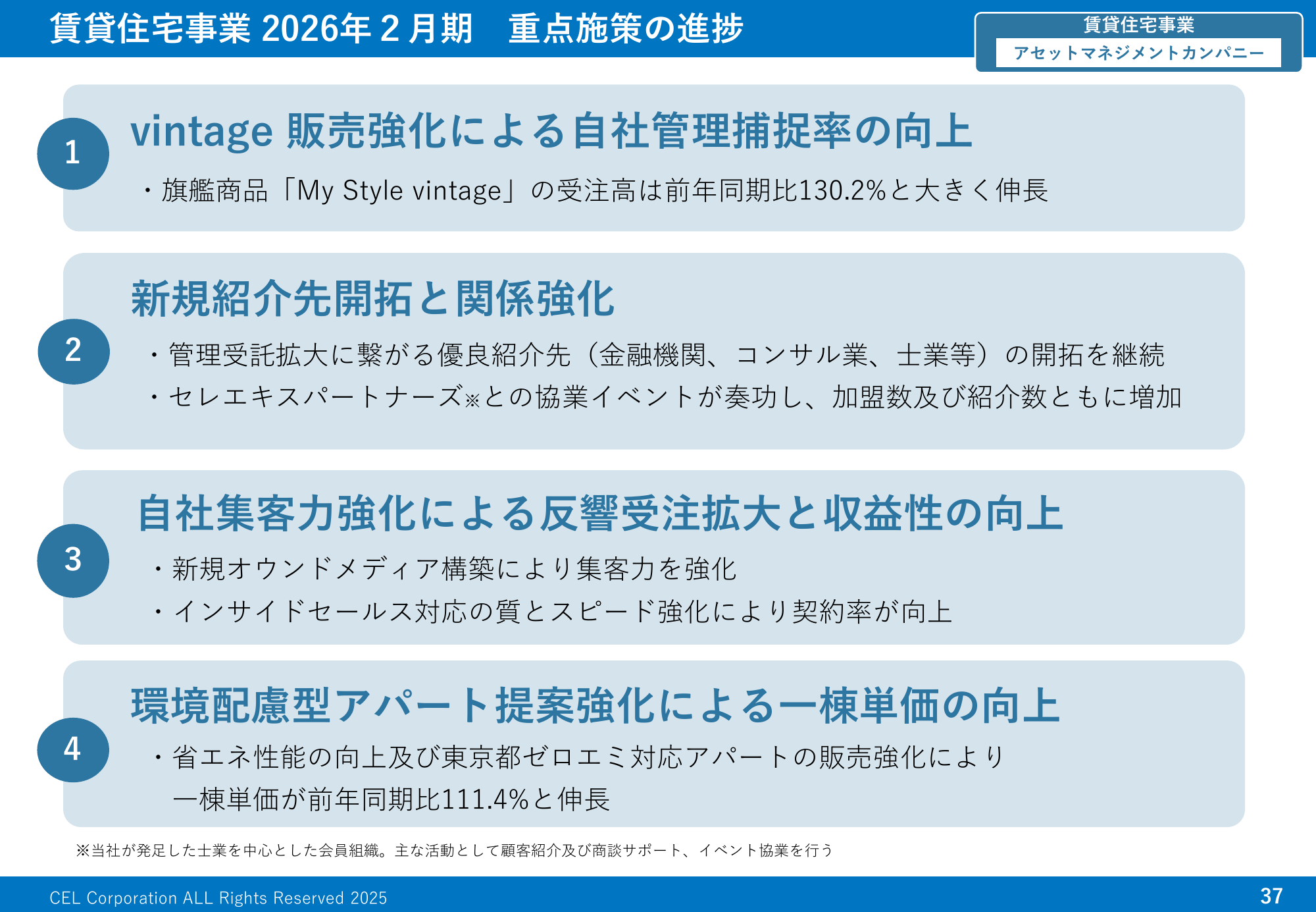 賃貸住宅事業 2026年2月期 重点施策の進捗アセットマネジメントカンパニー