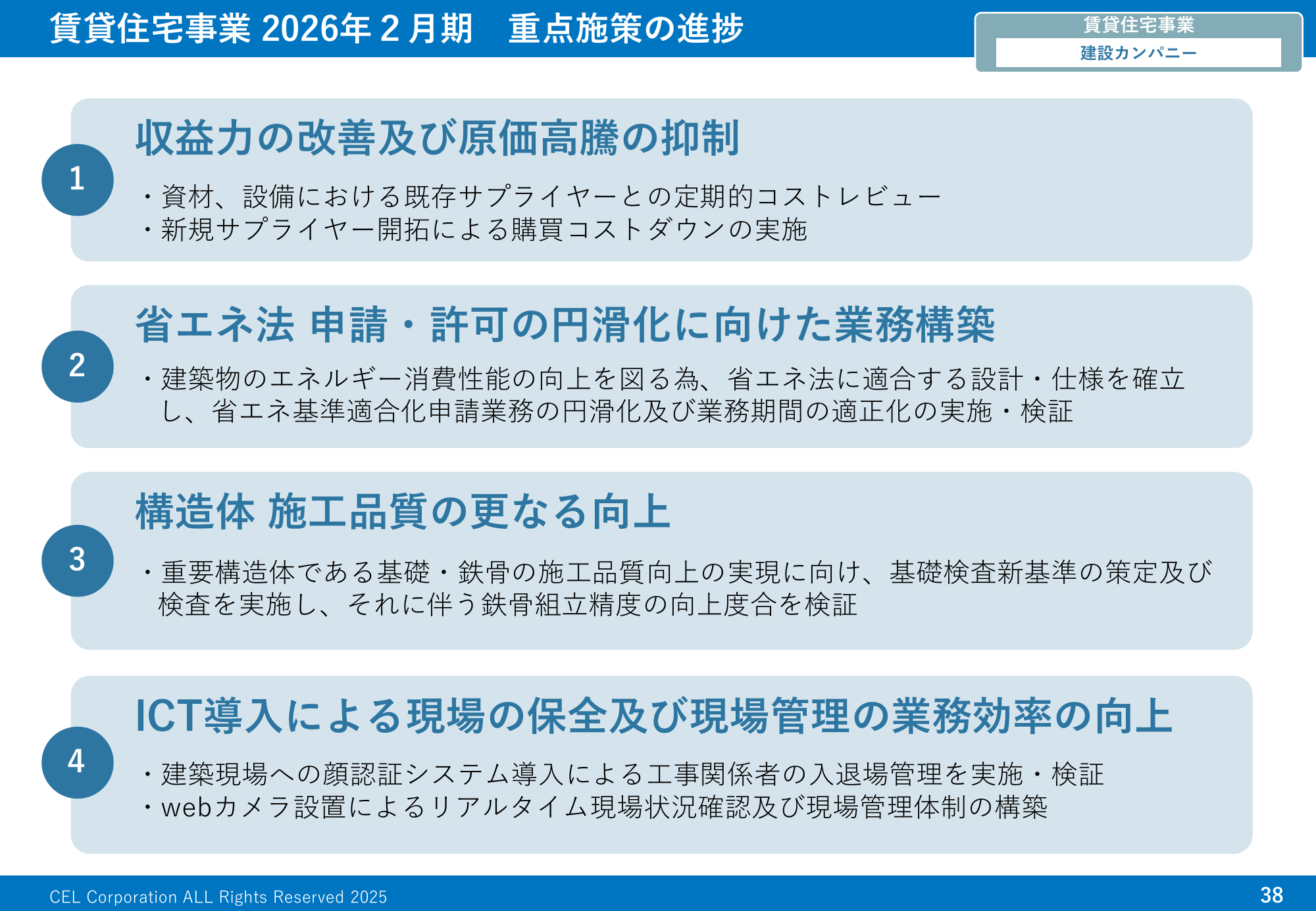 賃貸住宅事業 2026年2月期 重点施策の進捗建設カンパニー