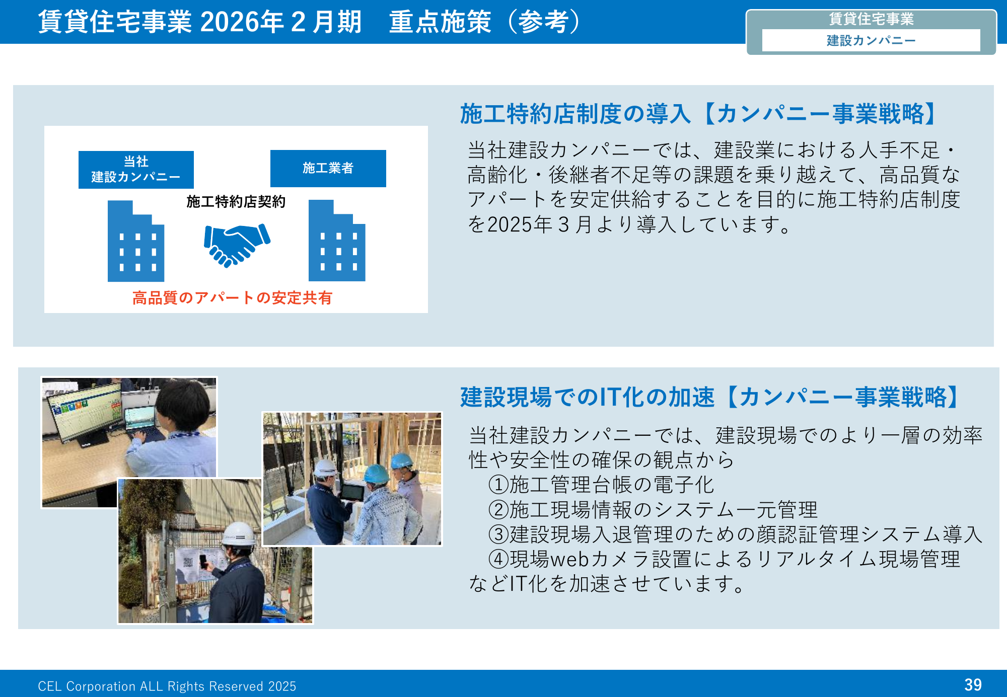 賃貸住宅事業 2026年2月期 重点施策(参考)建設カンパニー