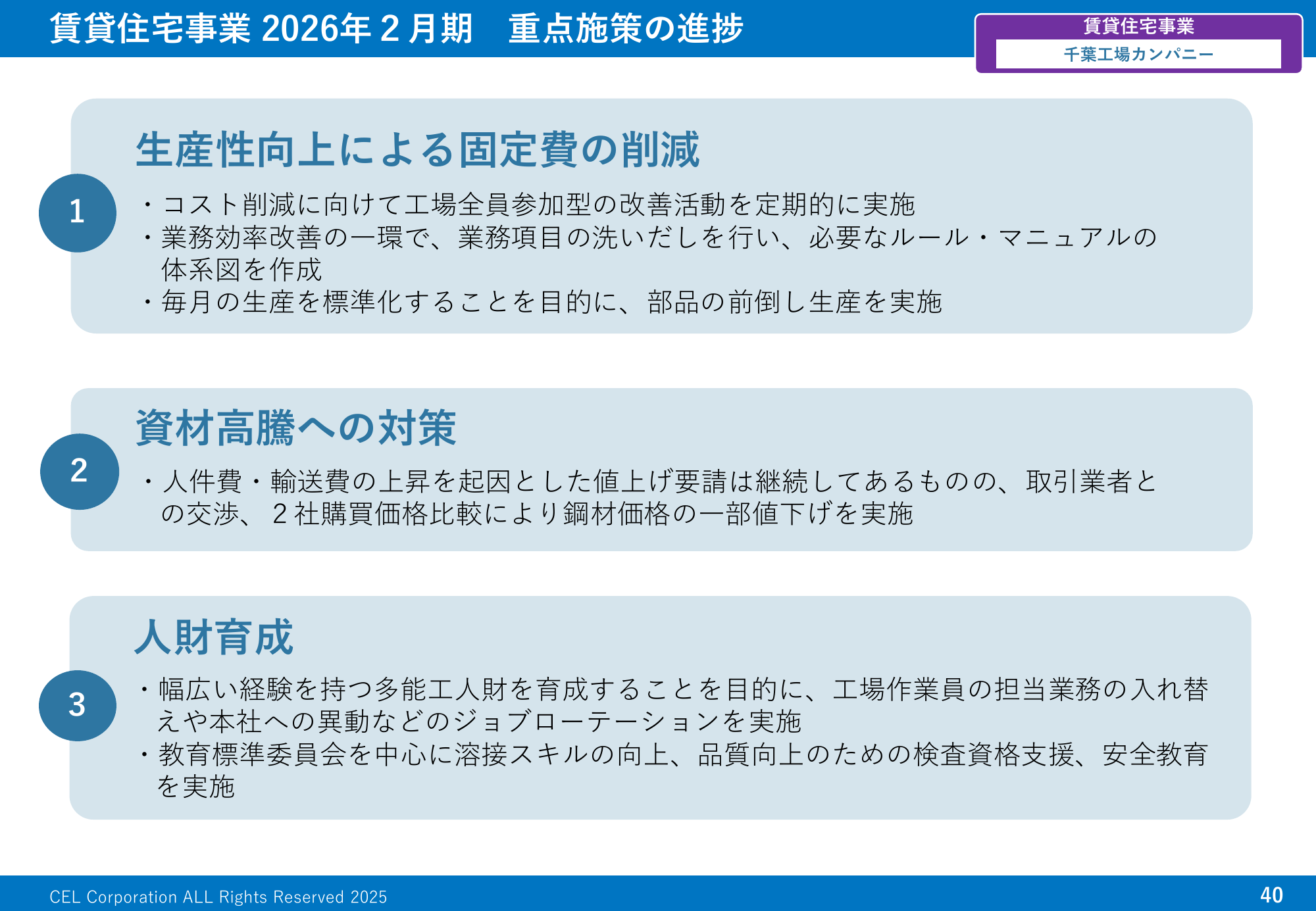 賃貸住宅事業 2026年2月期 重点施策の進捗千葉工場カンパニー