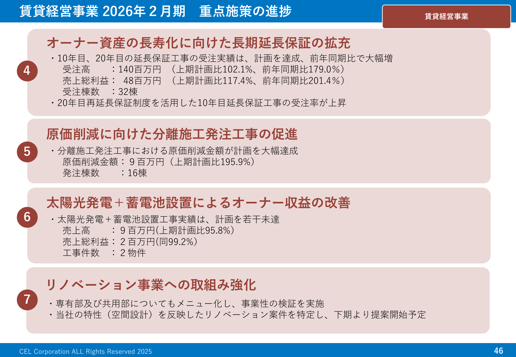 賃貸経営事業 2026年2月期 重点施策の進捗 2