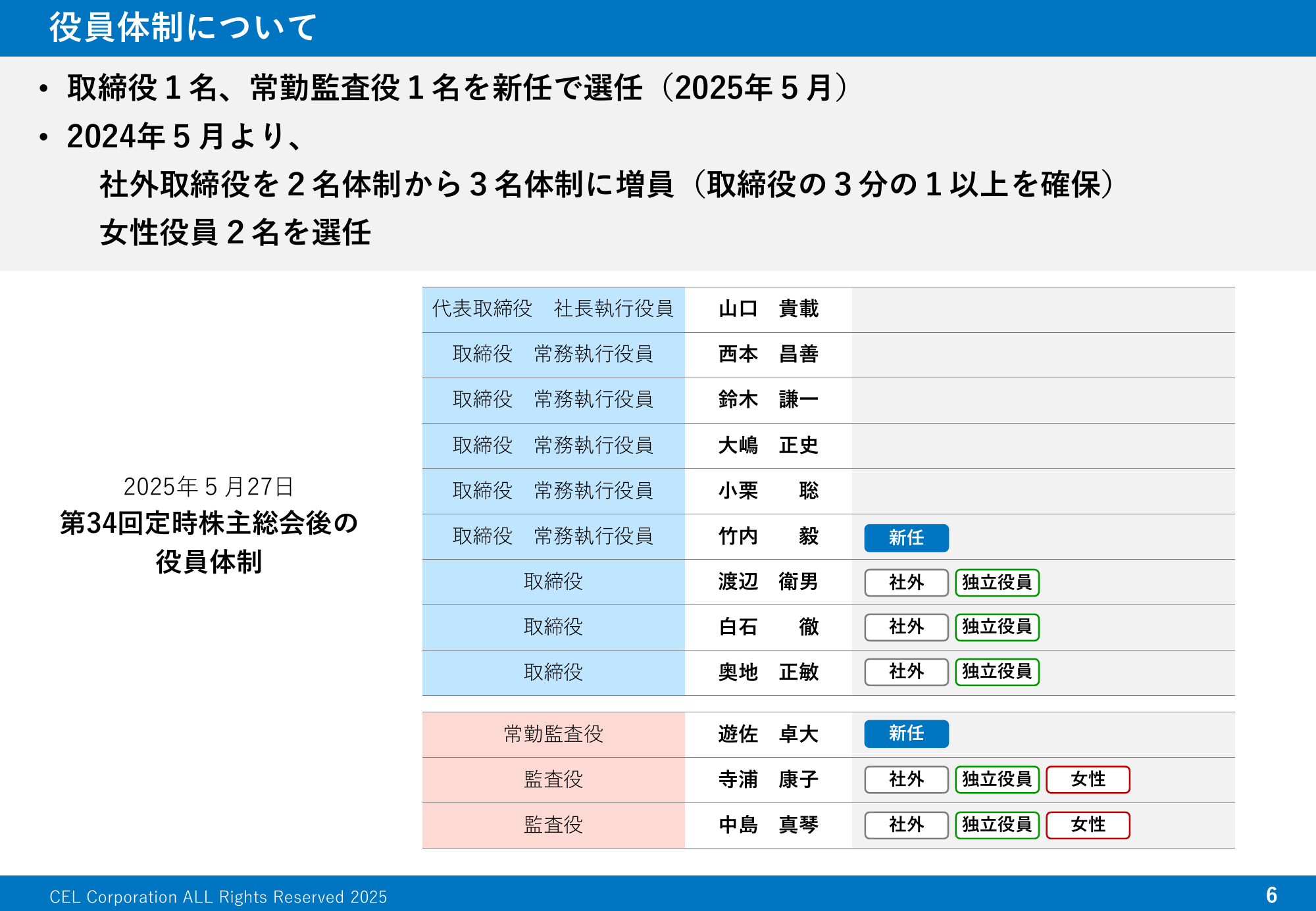 役員体制について
