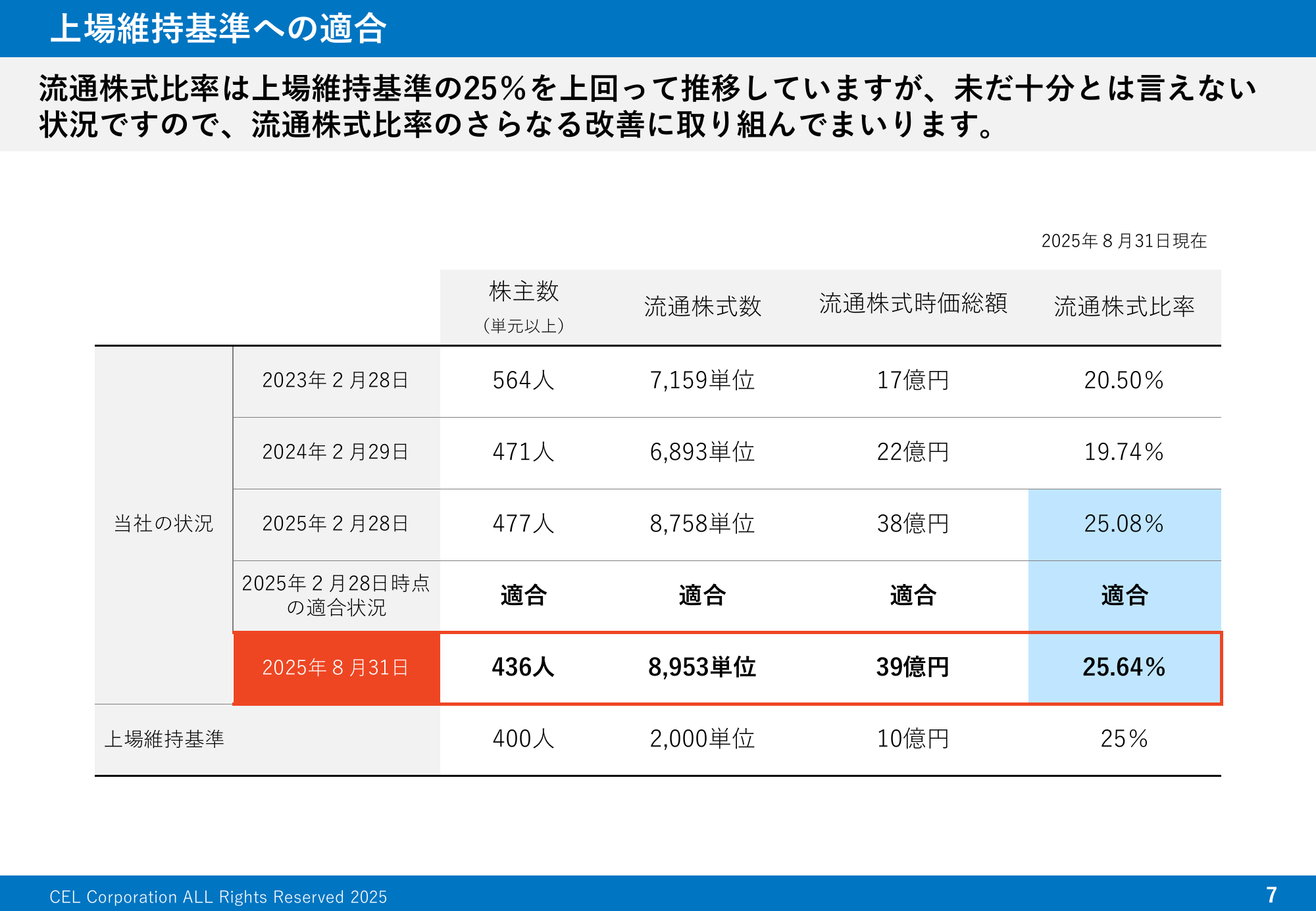 上場維持基準への適合