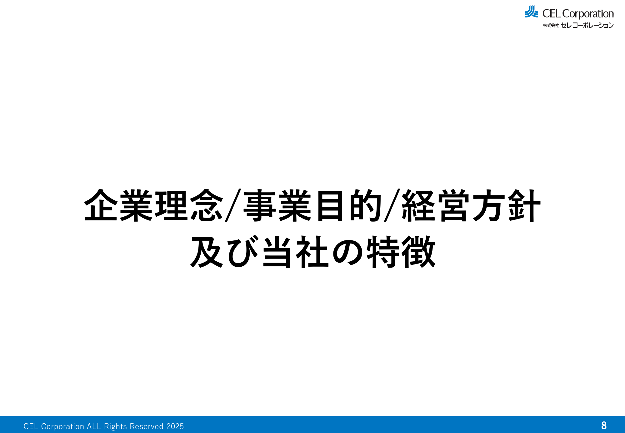 企業理念/事業目的/経営方針及び当社の特徴