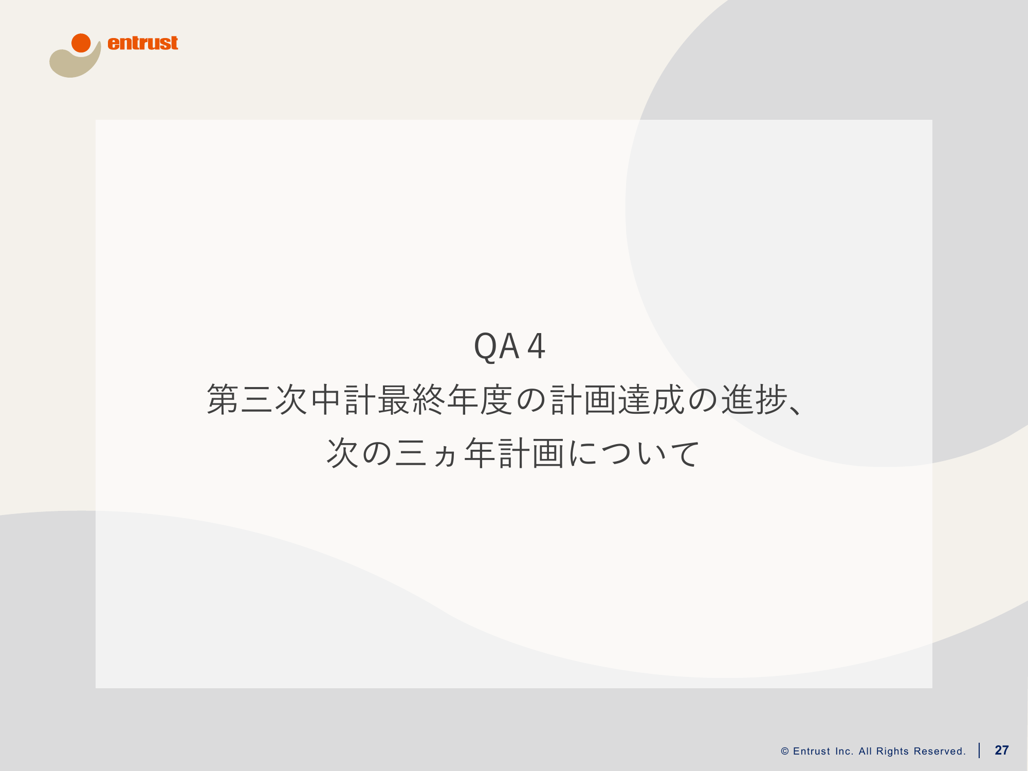 QA4.第三次中計最終年度の計画達成の進捗、次の三ヵ年計画について