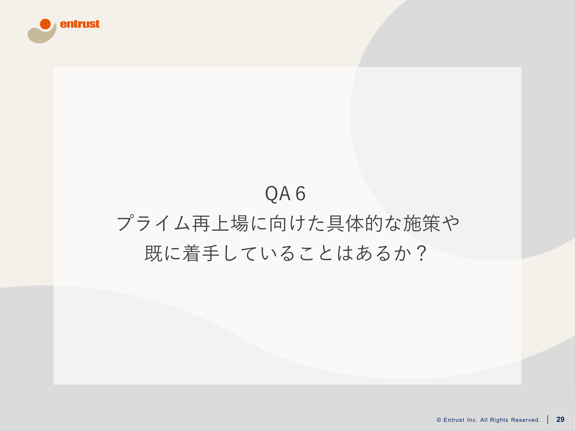 QA6.プライム再上場に向けた具体的な施策や既に着手していることはあるか?