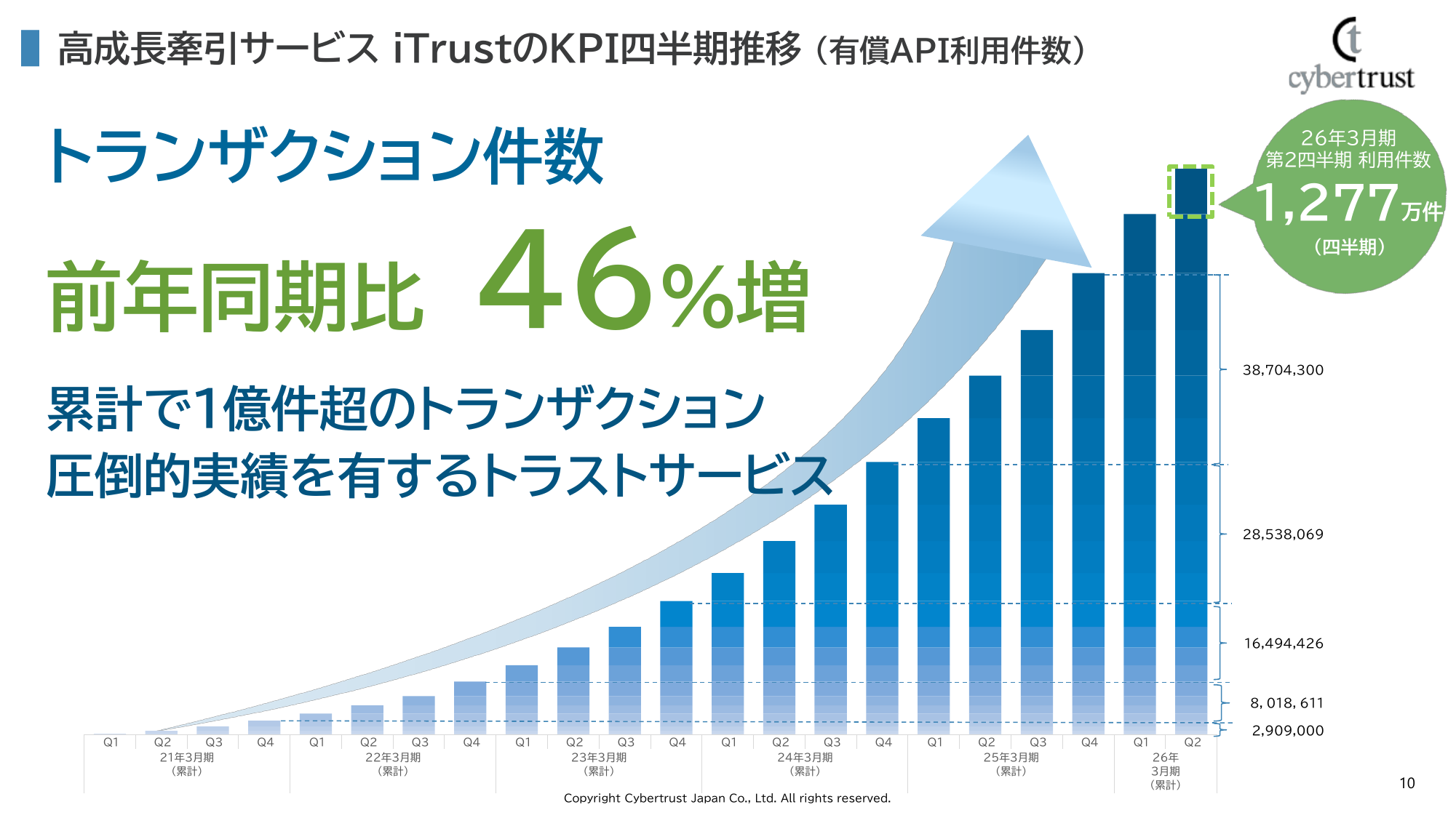 高成長牽引サービス iTrustのKPI四半期推移 (有償API利用件数)