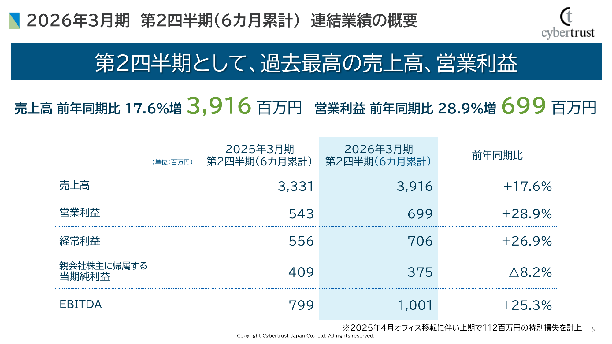 2026年3月期 第2四半期(6カ月累計)連結業績の概要