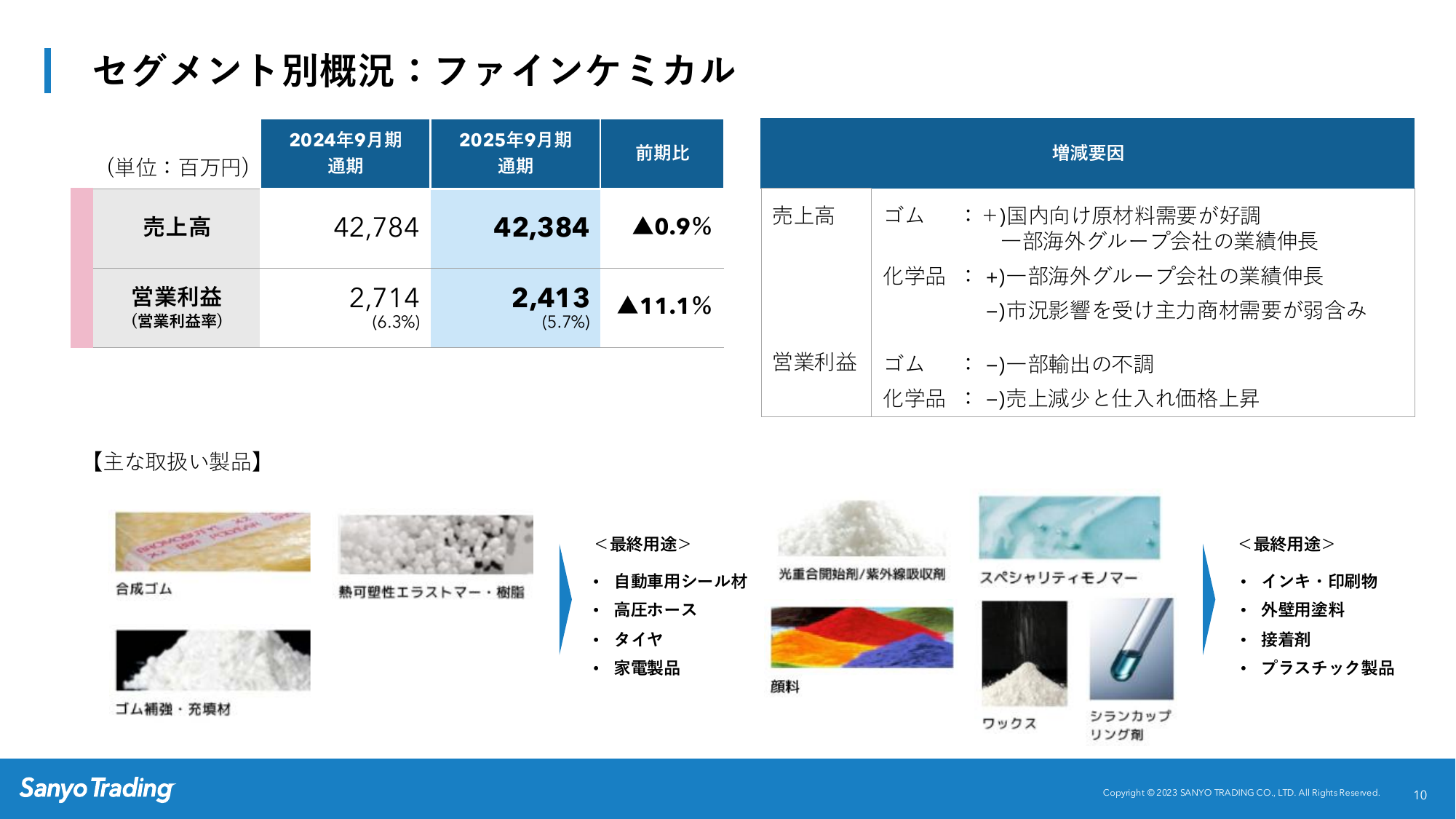 セグメント別概況:ファインケミカル
