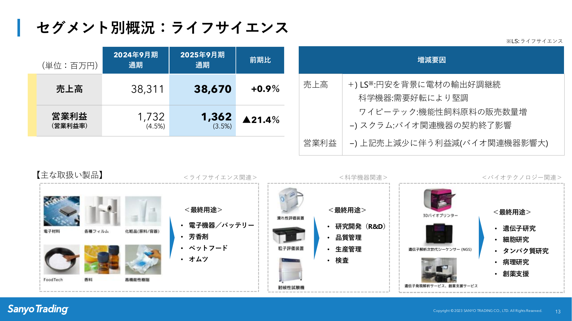 セグメント別概況:ライフサイエンス