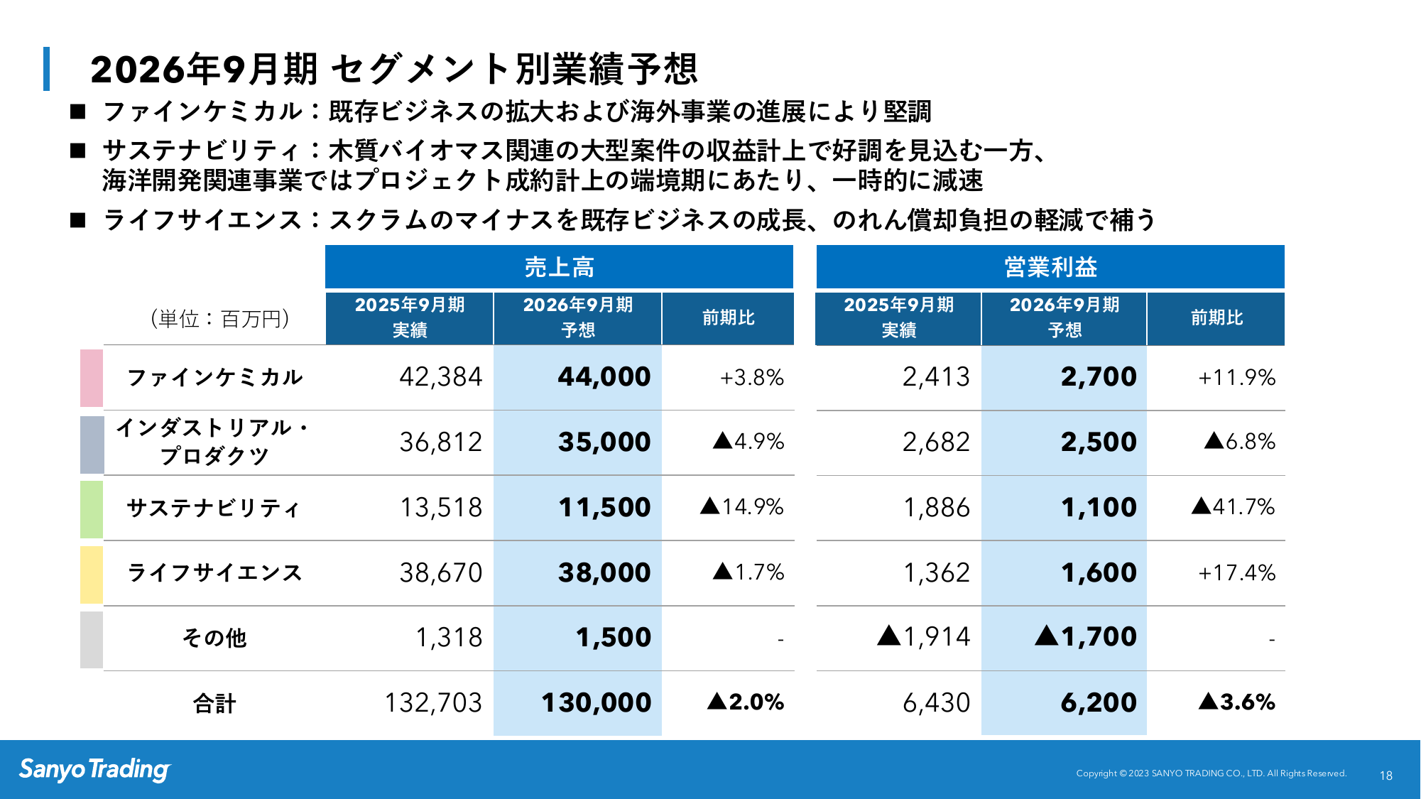 2026年9月期 セグメント別業績予想