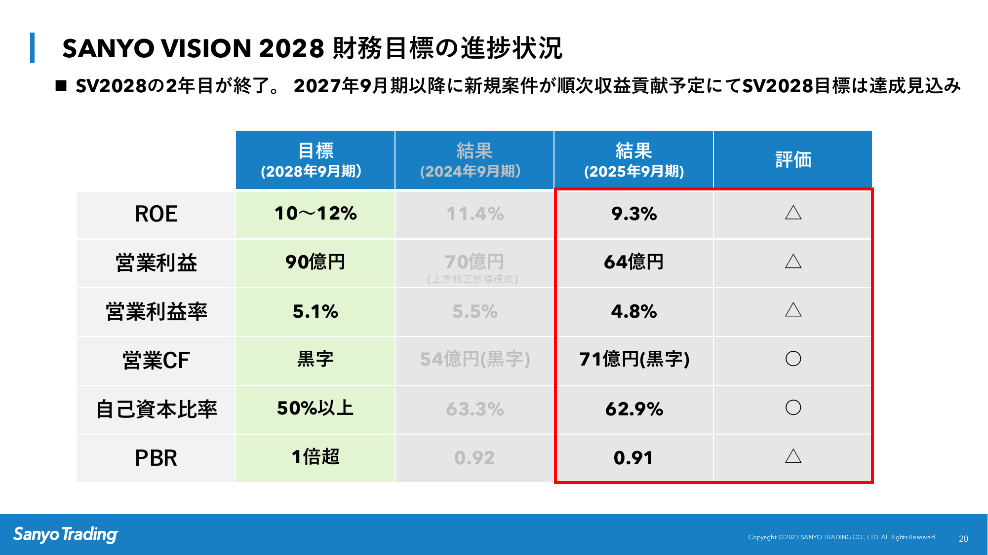 SANYO VISION 2028 財務目標の進捗状況