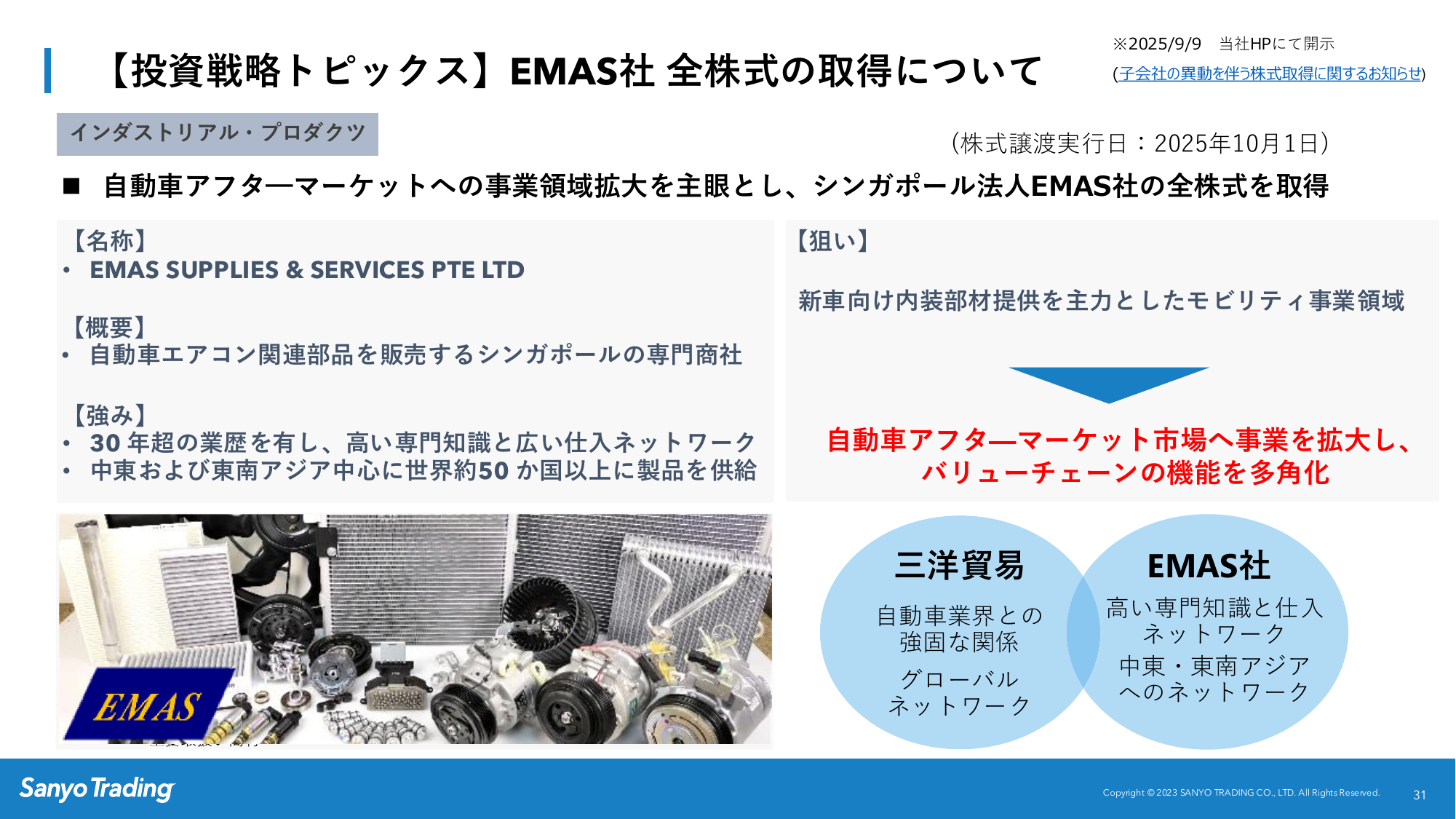 【投資戦略トピックス】EMAS社 全株式の取得について