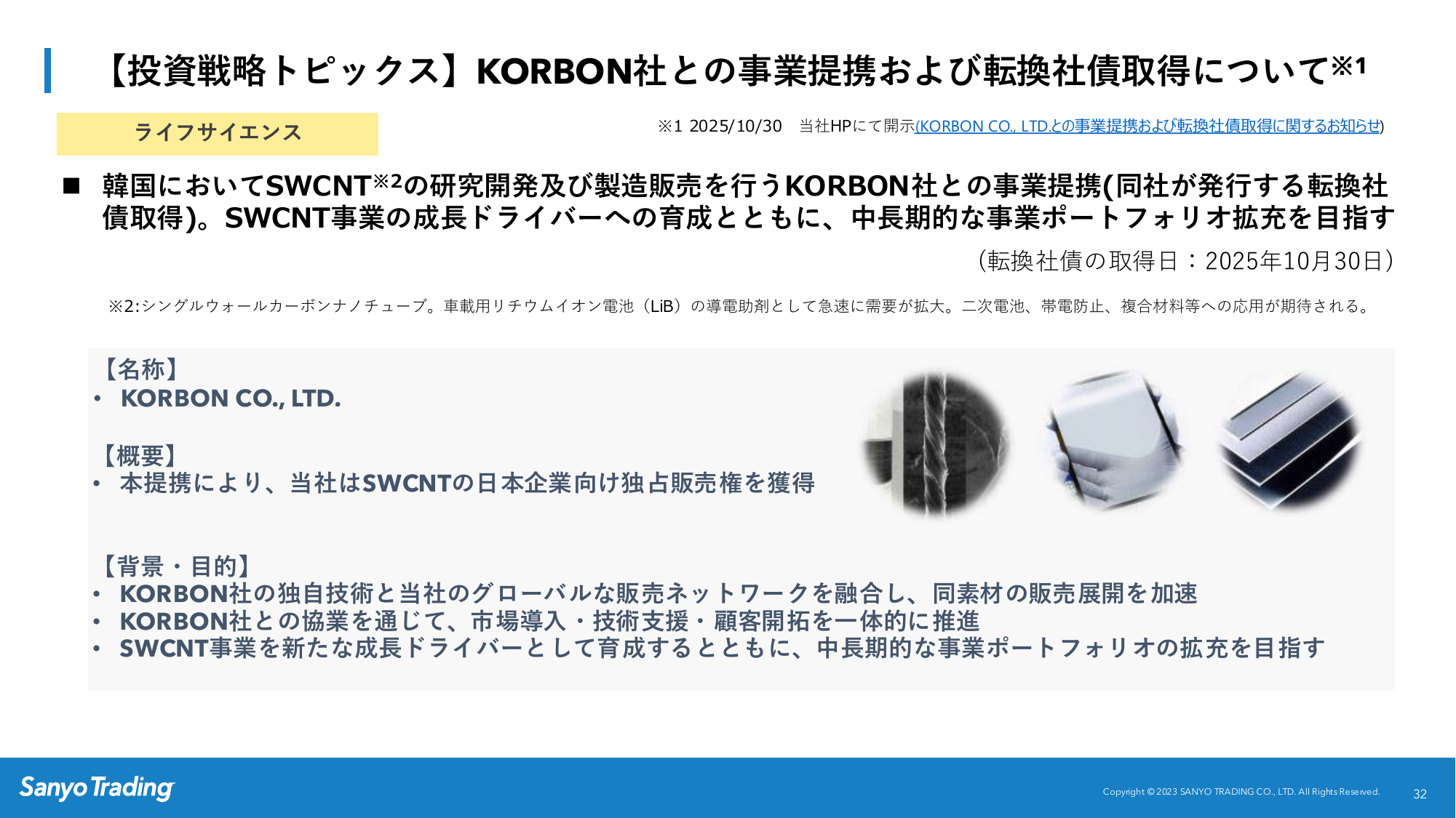 【投資戦略トピックス】KORBON社との事業提携および転換社債取得について