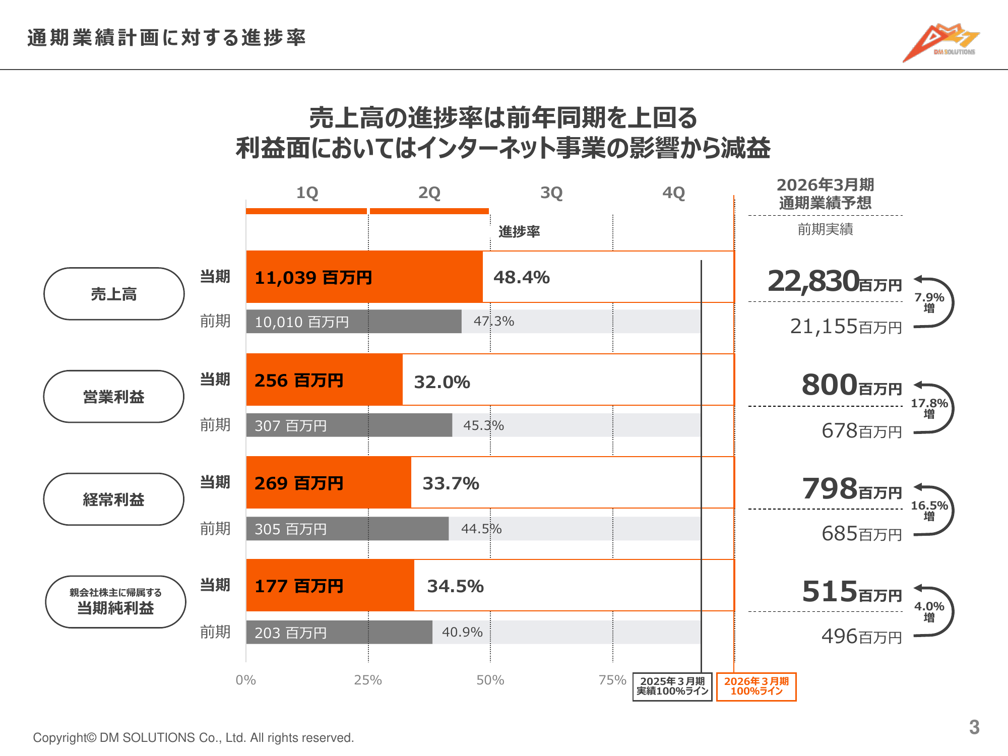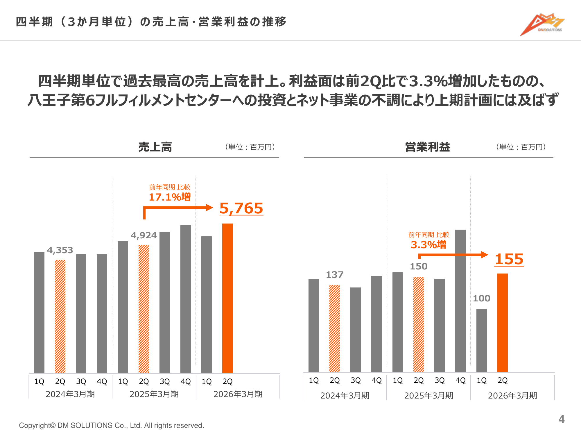四半期( 3 か月単位) の売上高・営業利益の推移