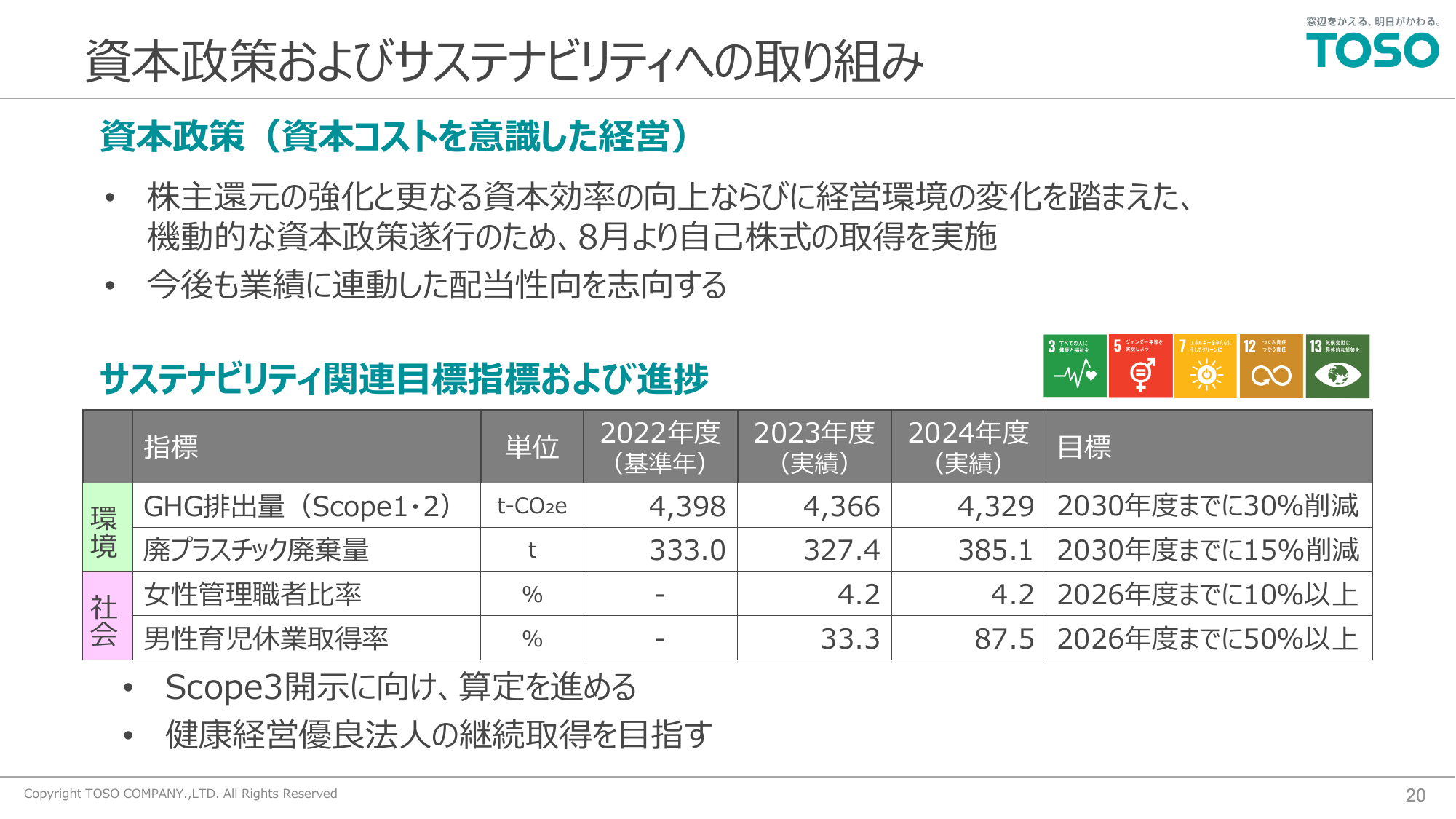 資本政策およびサステナビリティへの取り組み