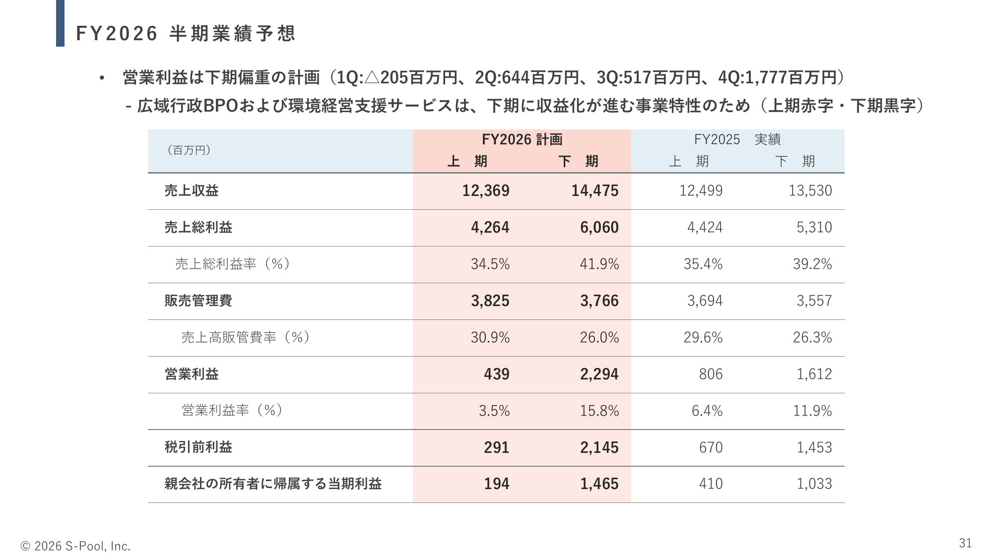 FY 2026 半期業績予想