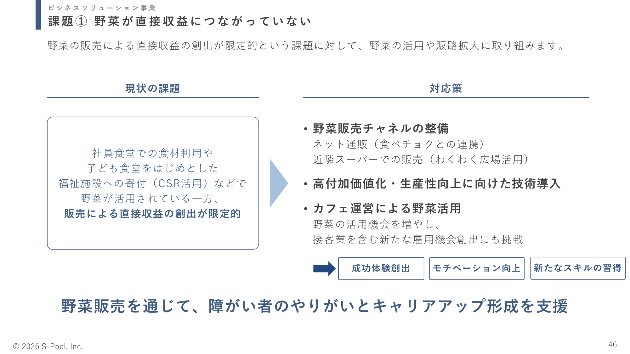 課題① 野菜が直接収益につながっていない