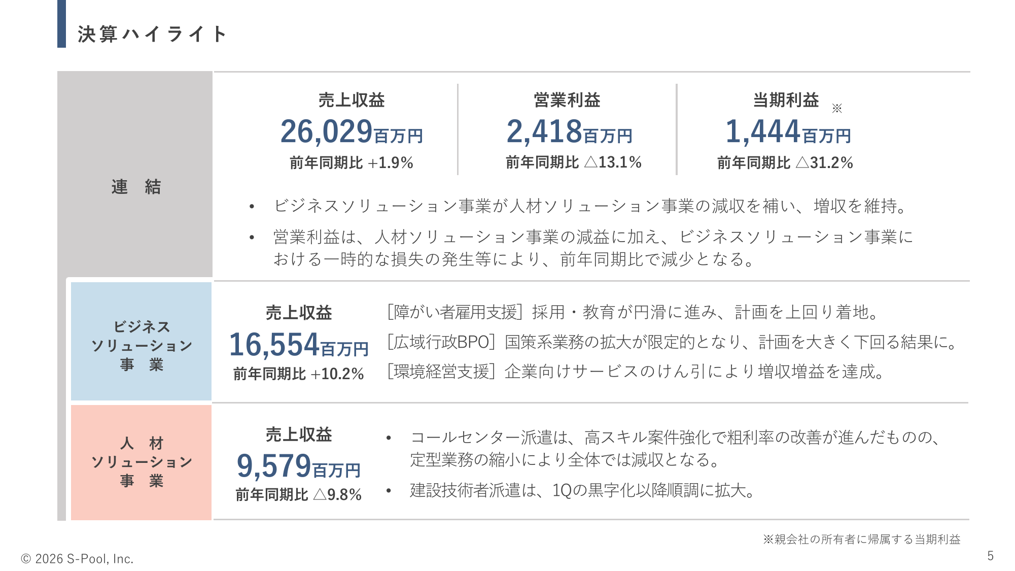 決算ハイライト