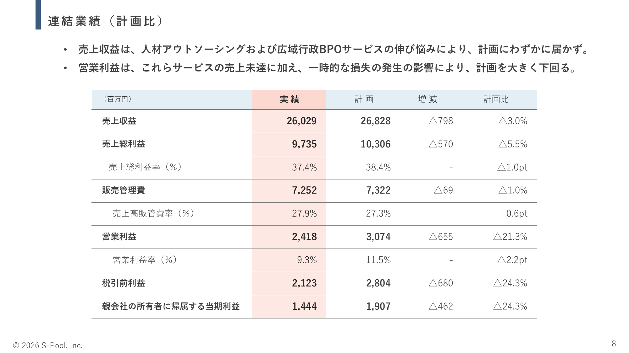 連結業績(計画比)