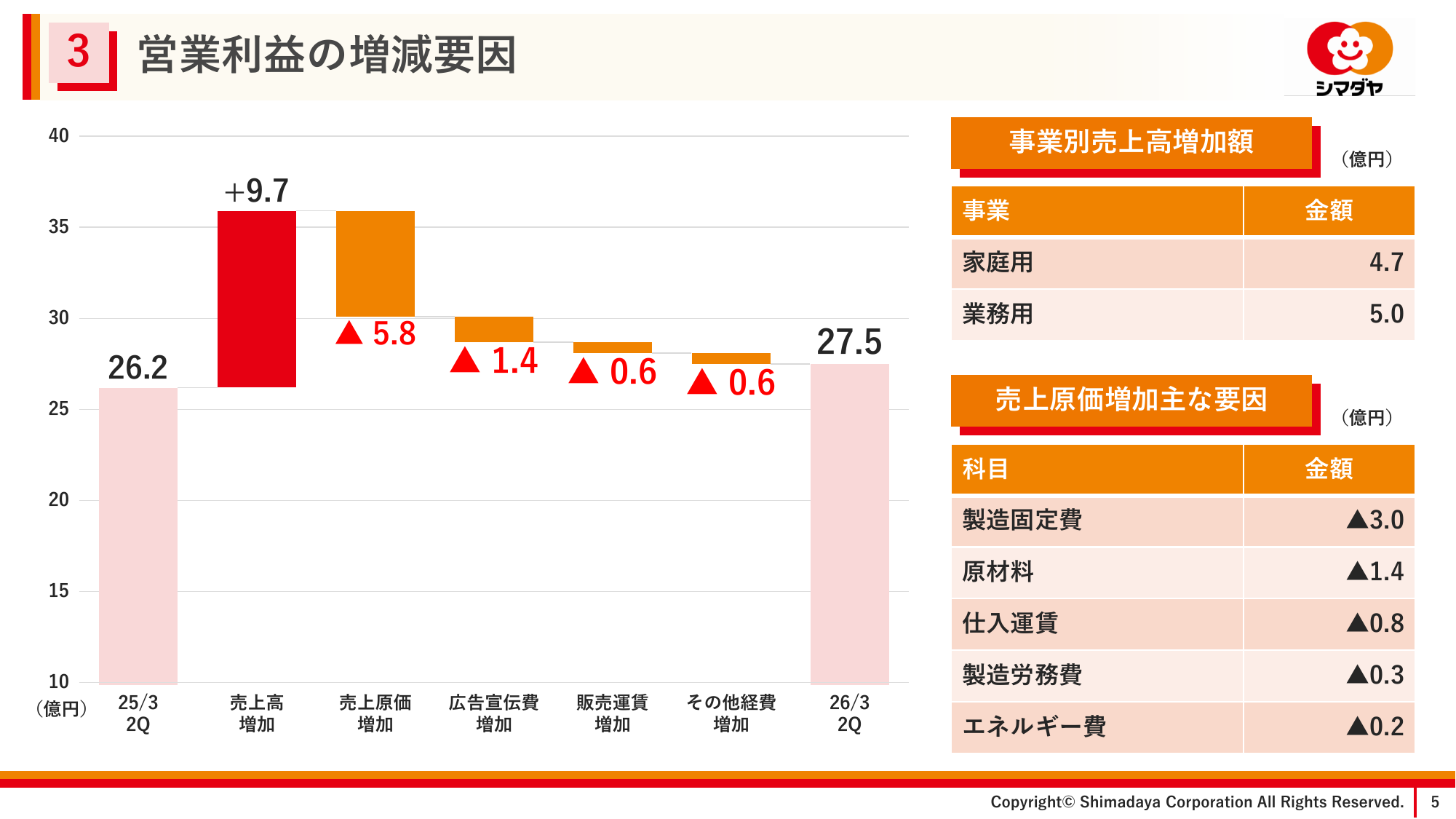 営業利益の増減要因