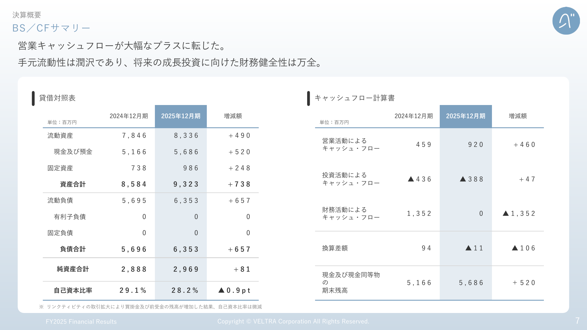 決算概要 BS/CFサマリー