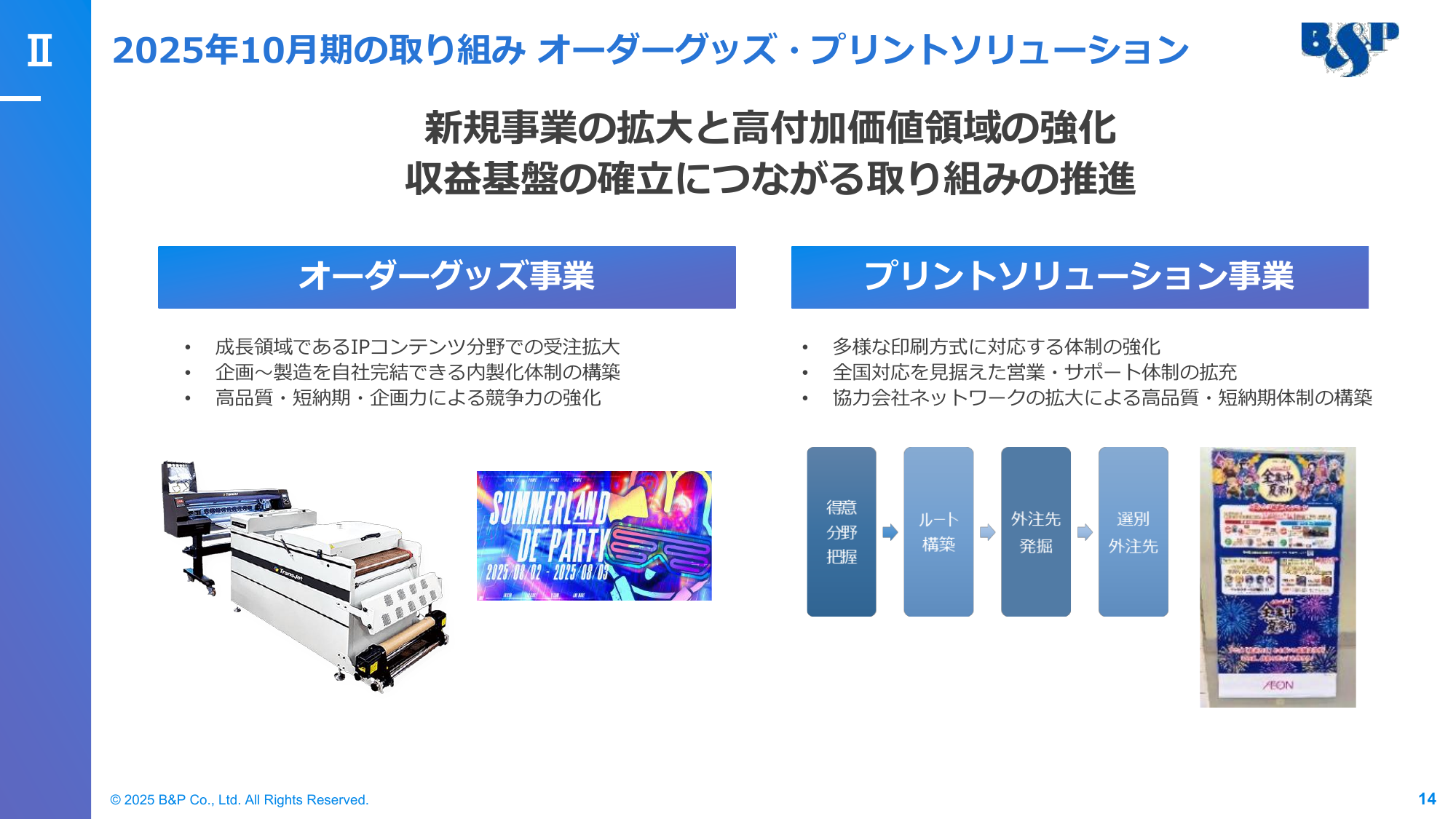 2025年10月期の取り組み オーダーグッズ・プリントソリューション