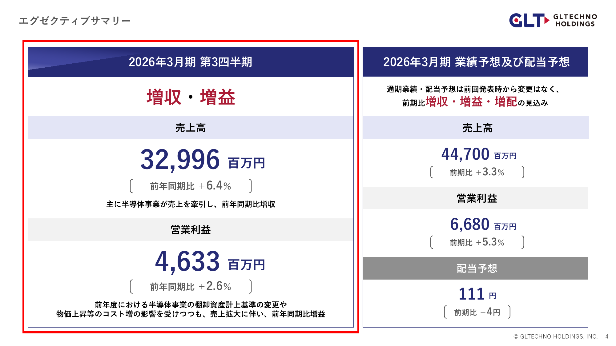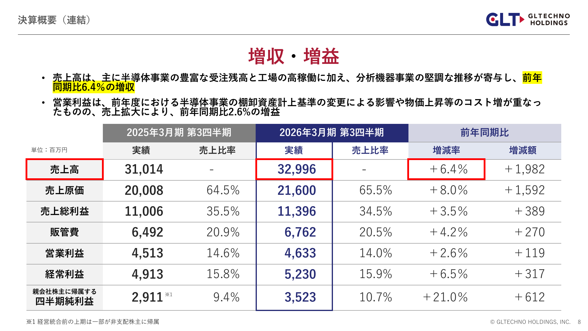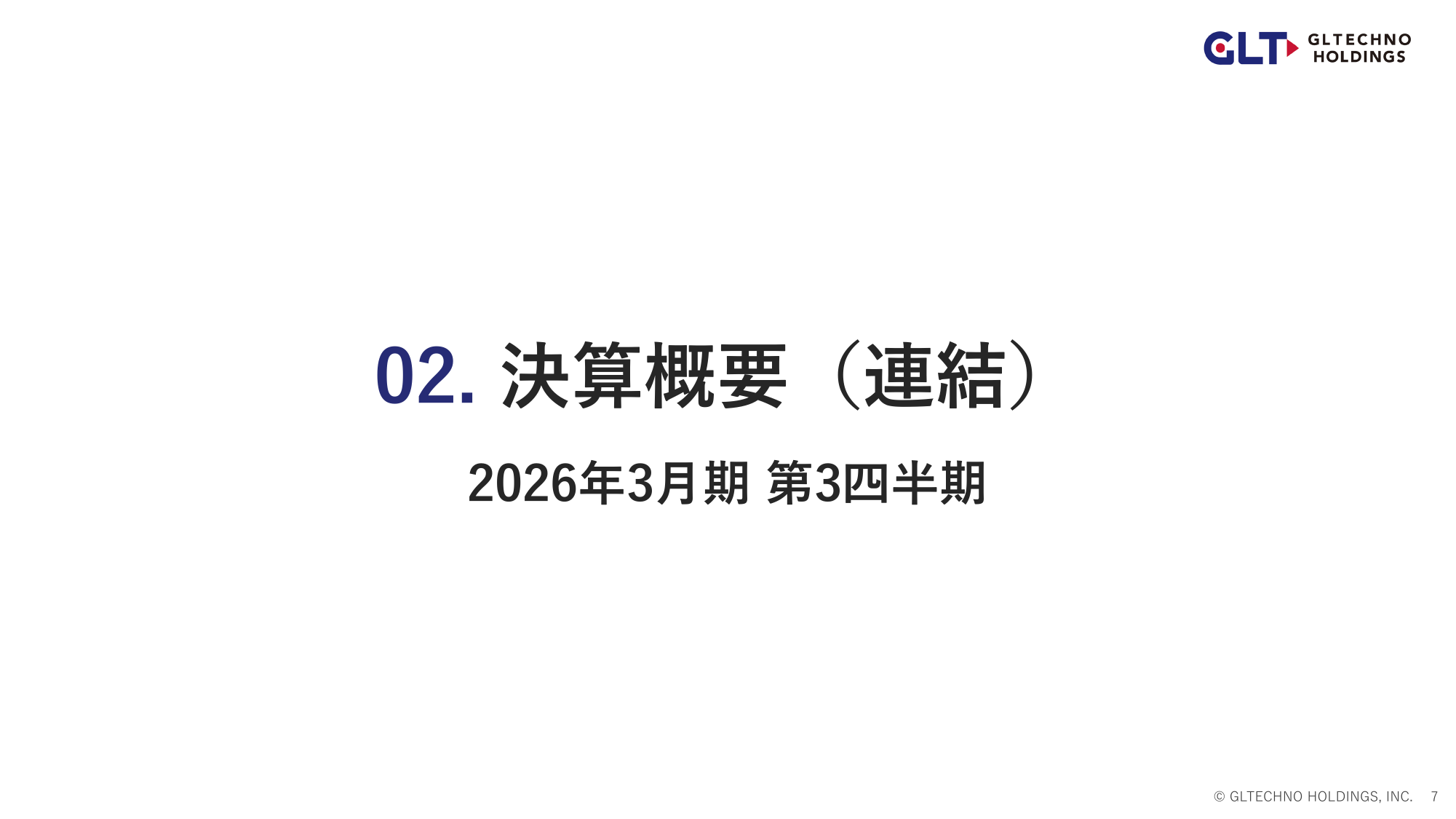 ジーエルテクノホールディングス株式会社 2026年3月期 第3四半期 決算説明