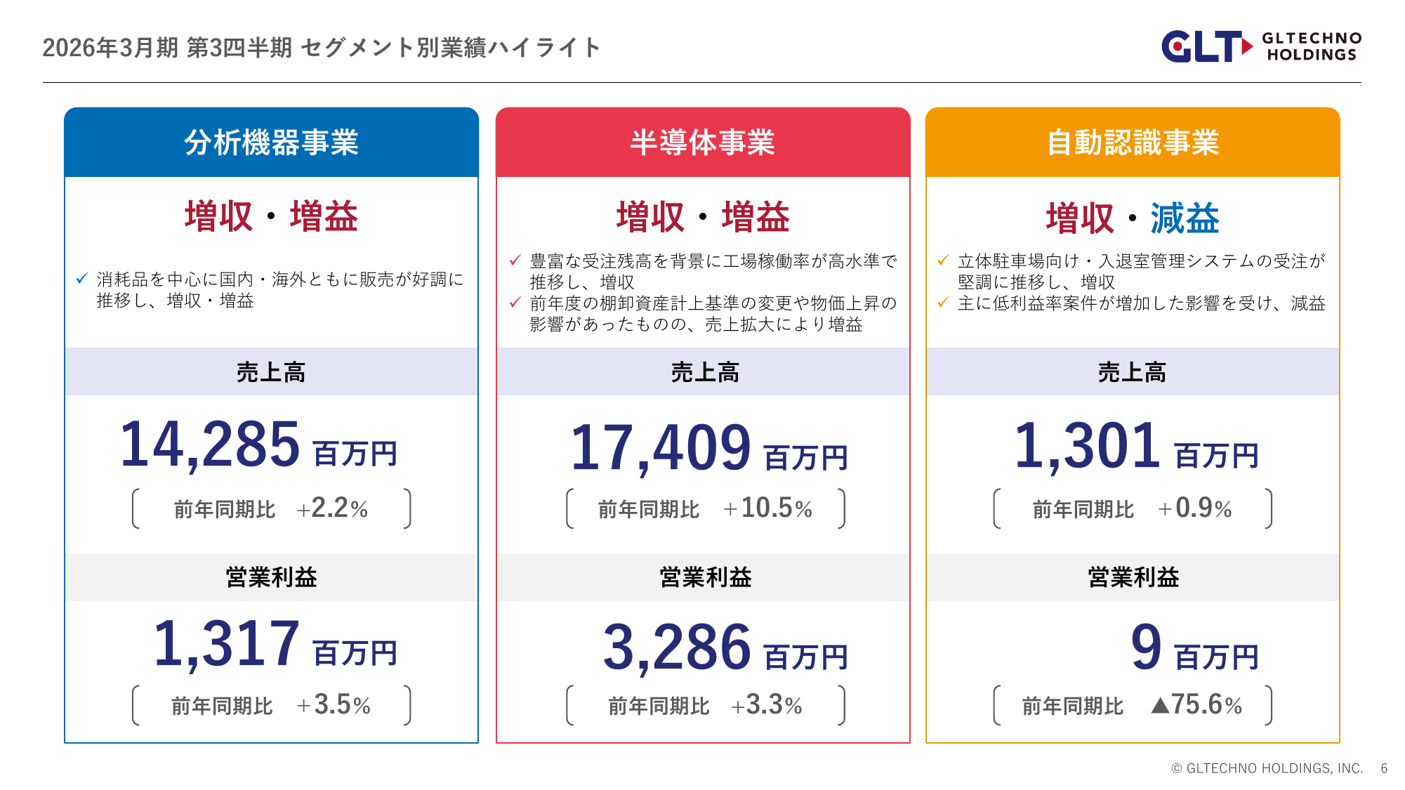 2026年3月期 第3四半期 セグメント別業績ハイライト