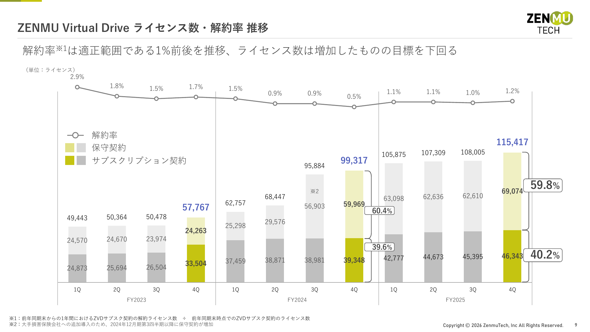 ZENMU Virtual Drive ライセンス数・解約率 推移