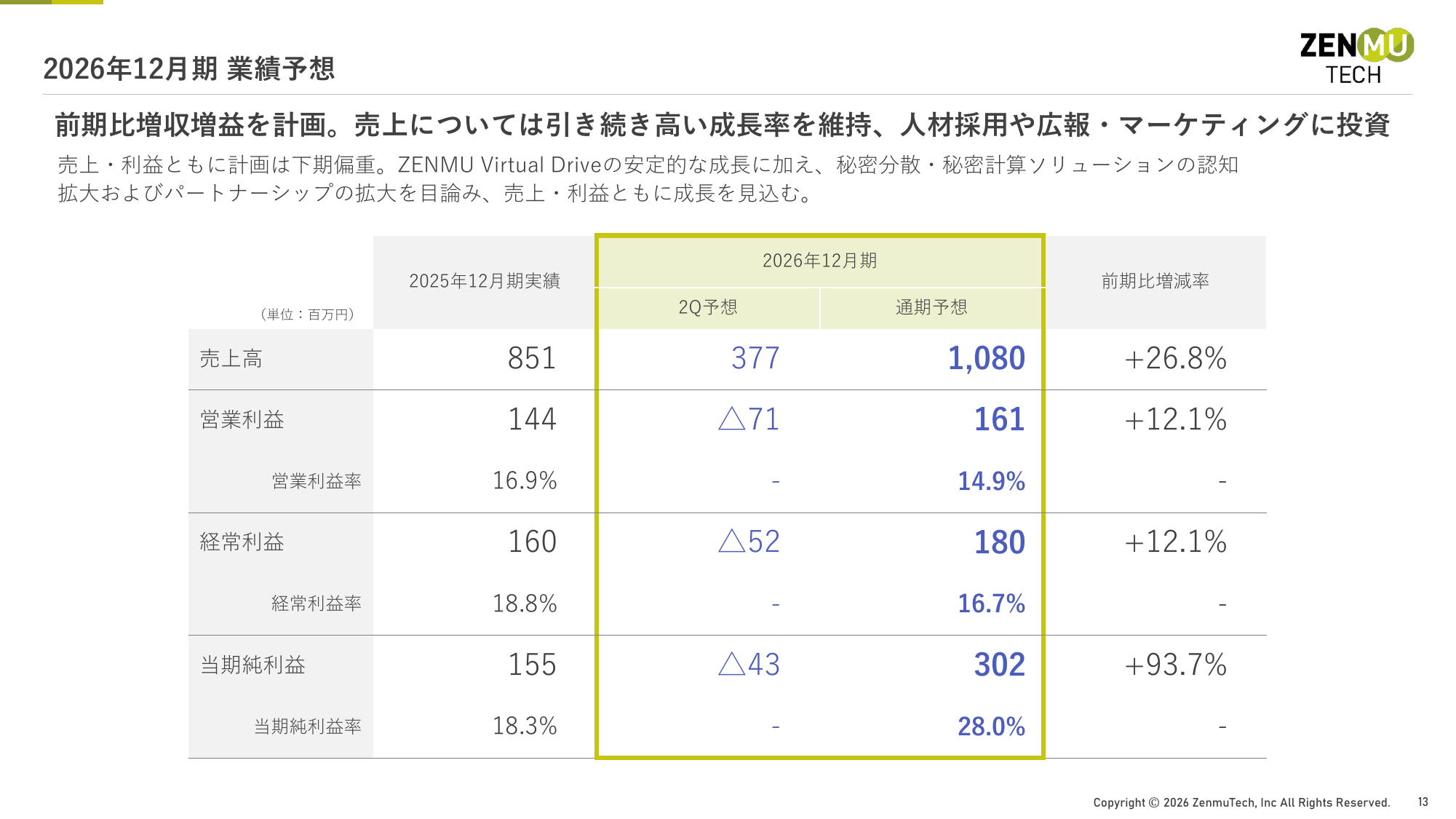 2026年12月期 業績予想2