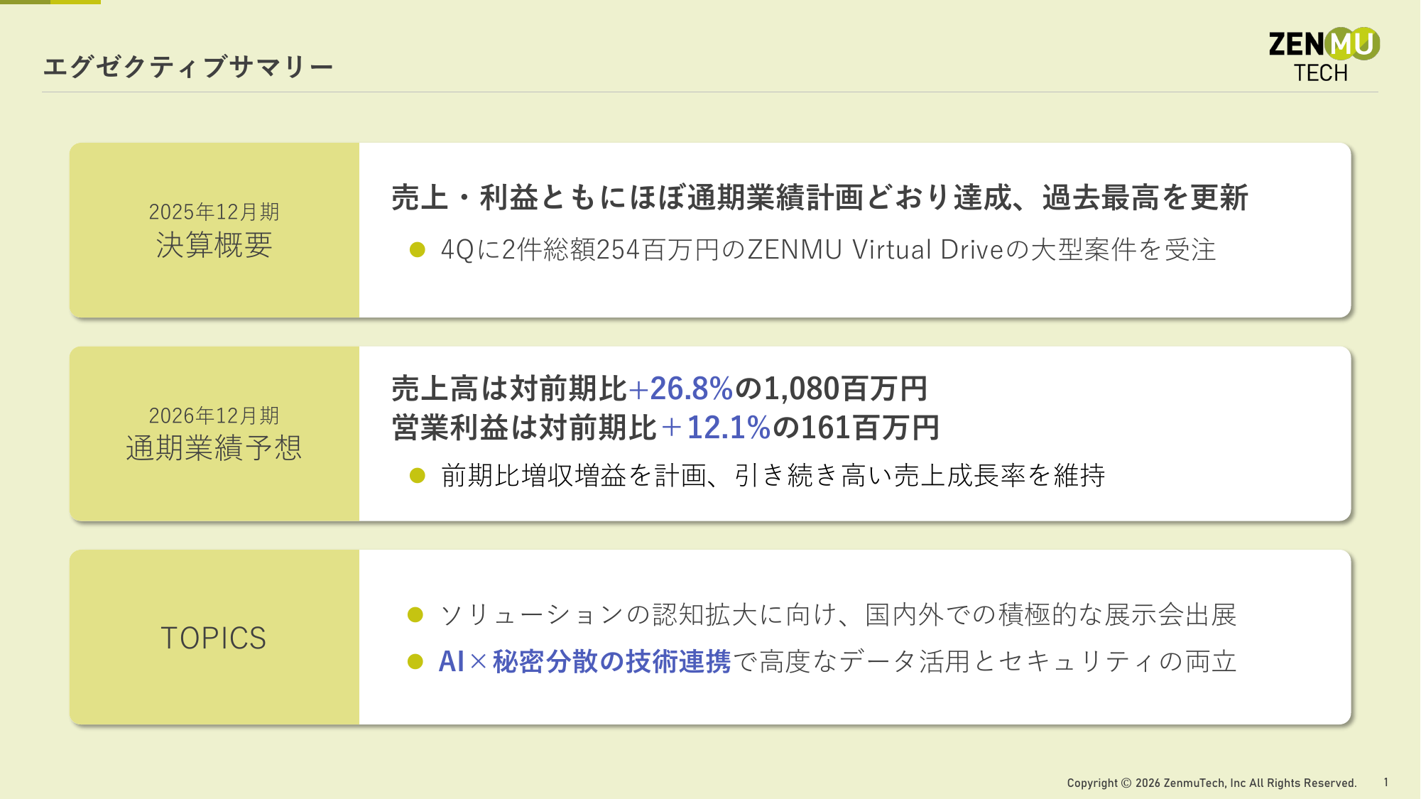 1. 2025年12月期 業績概要