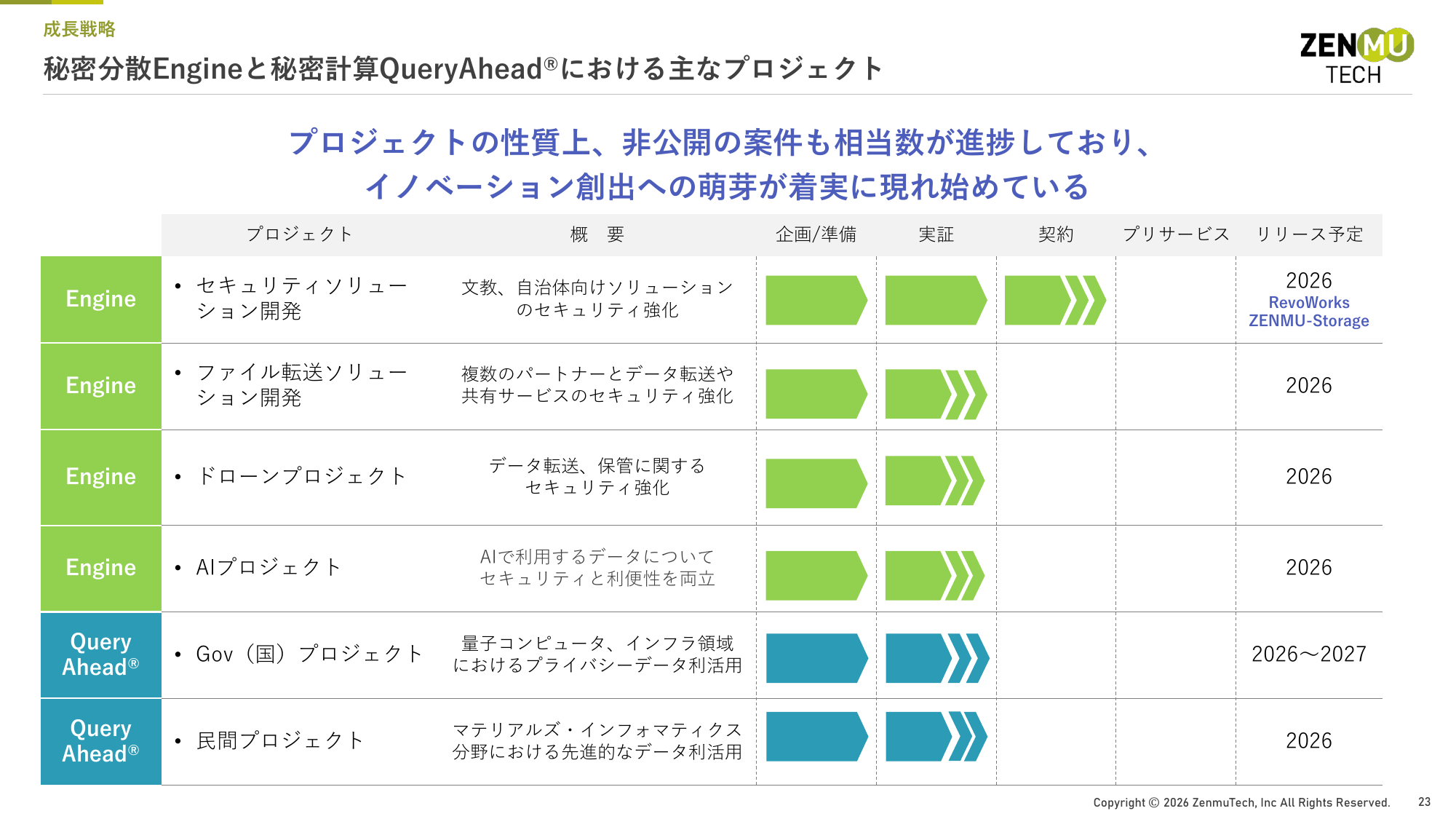 秘密分散Engineと秘密計算QueryAhead®における主なプロジェクト