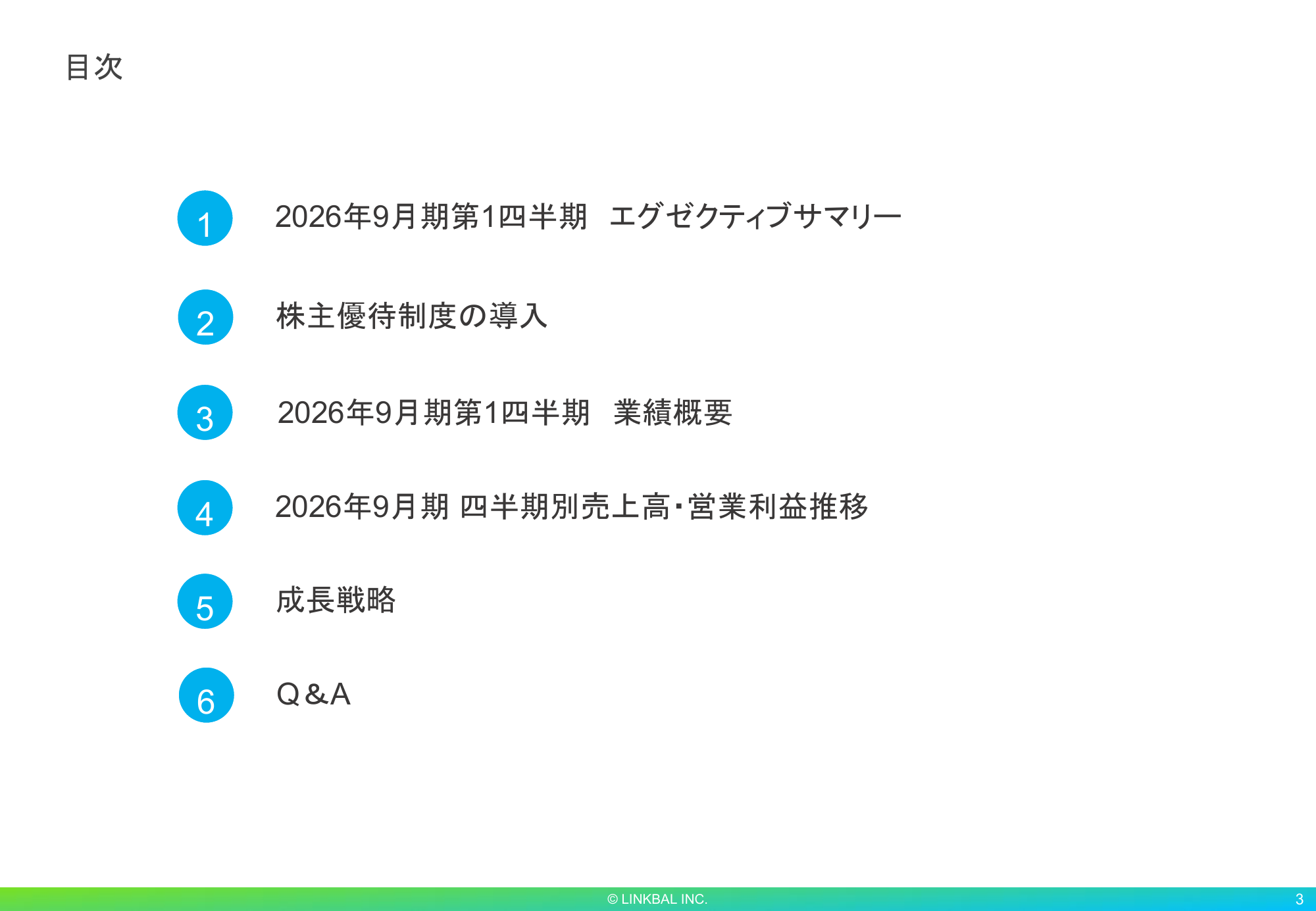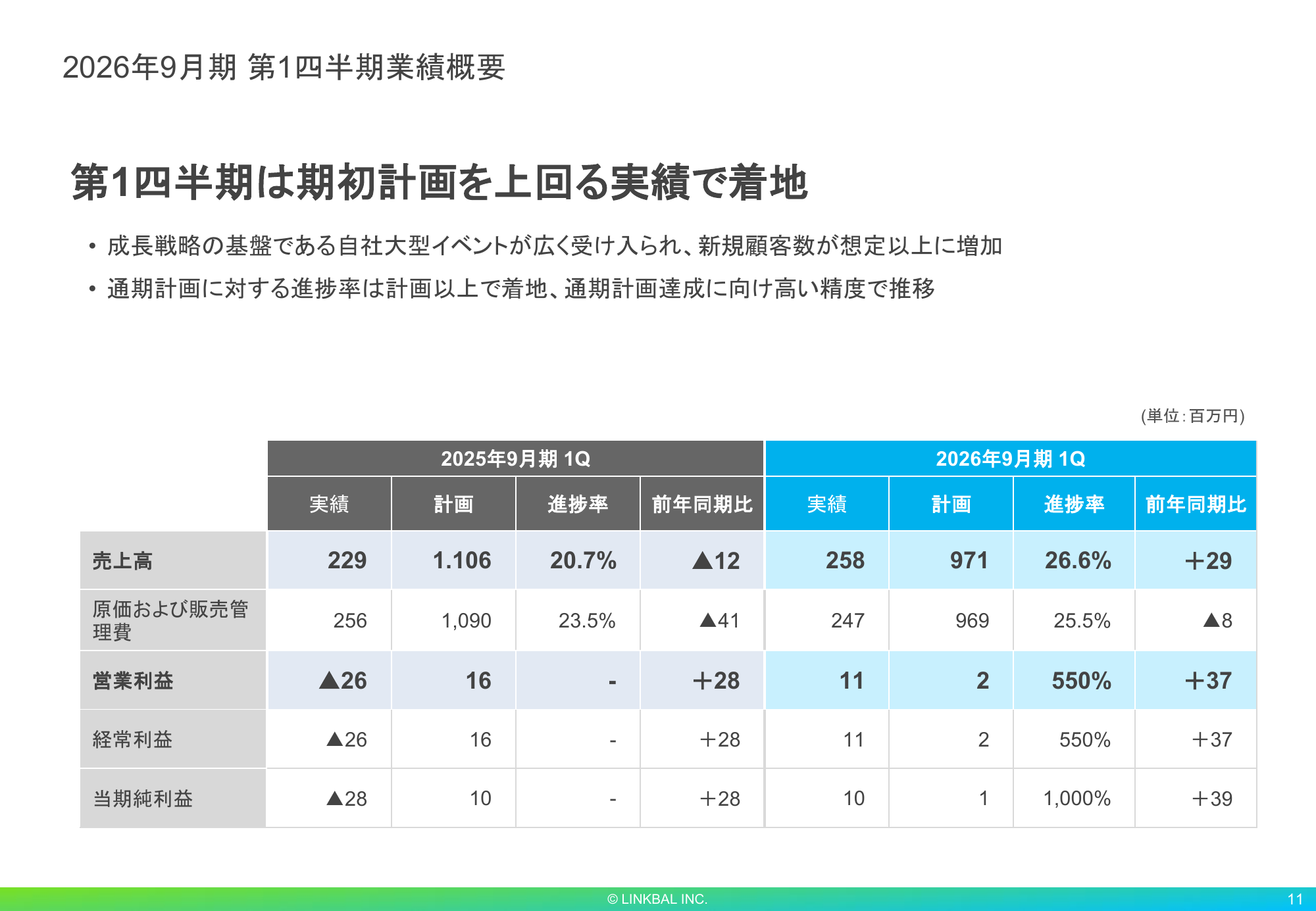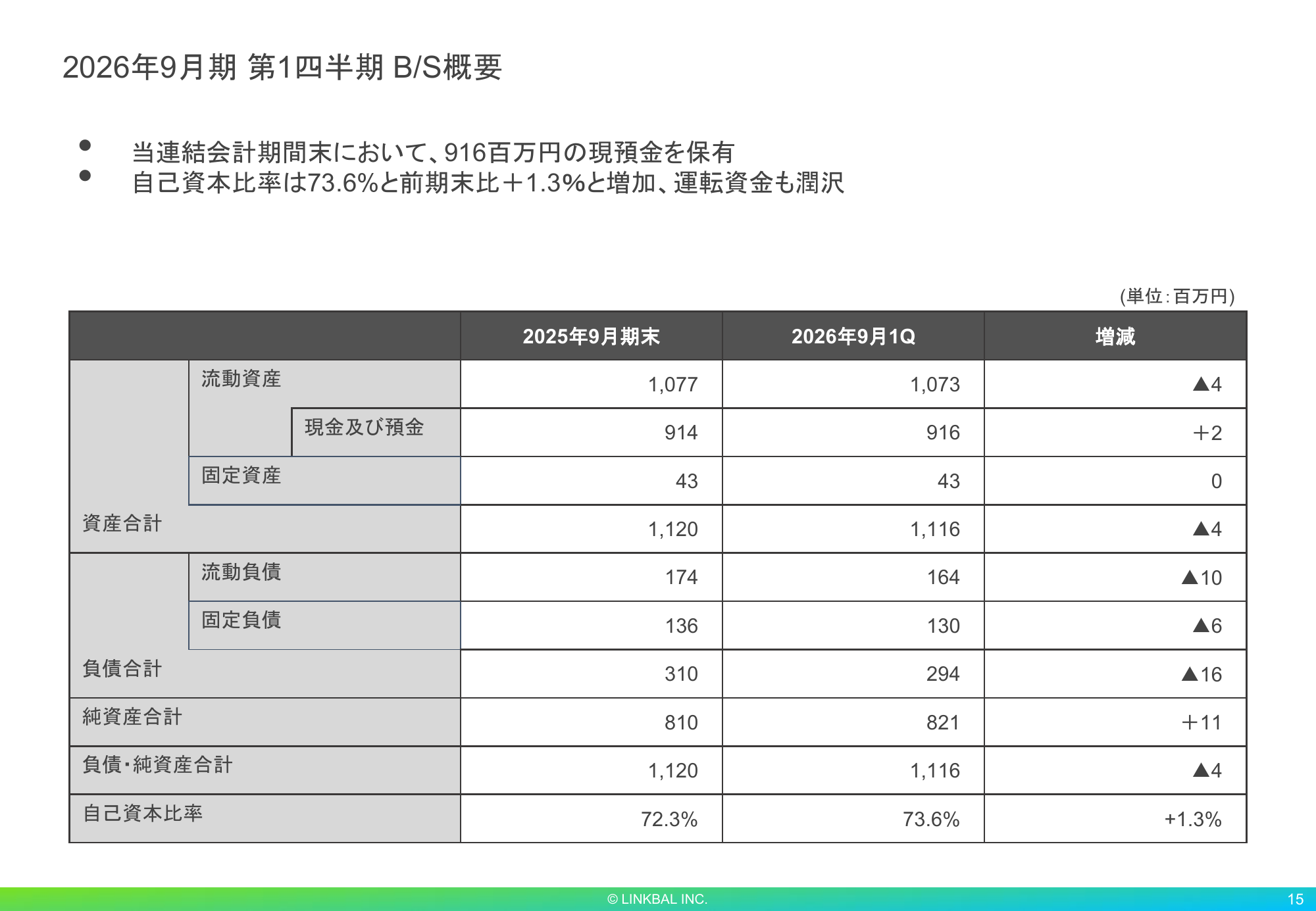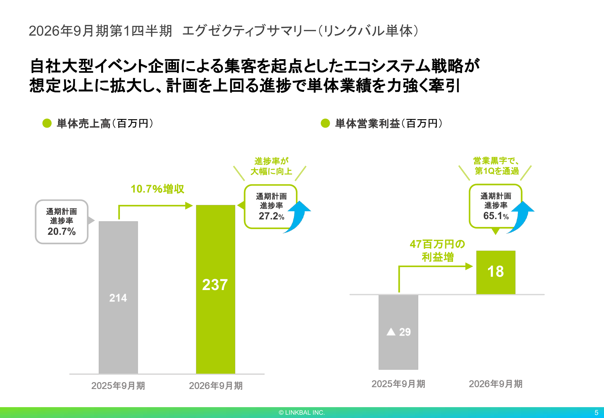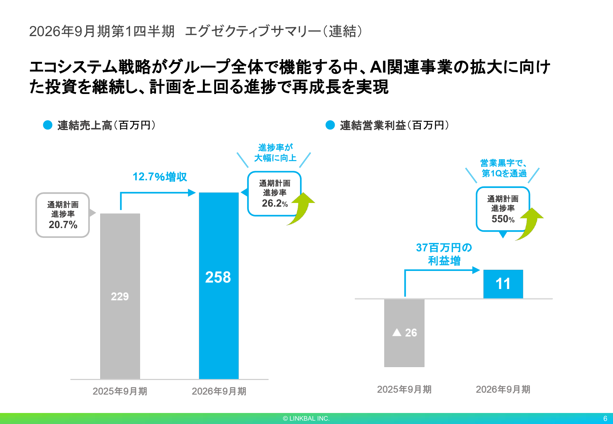 2026年9月期第1四半期 エグゼクティブサマリー(リンクバル単体)