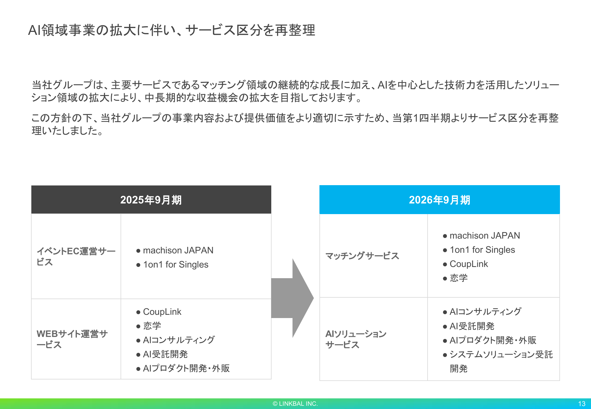 AI領域事業の拡大に伴い、サービス区分を再整理