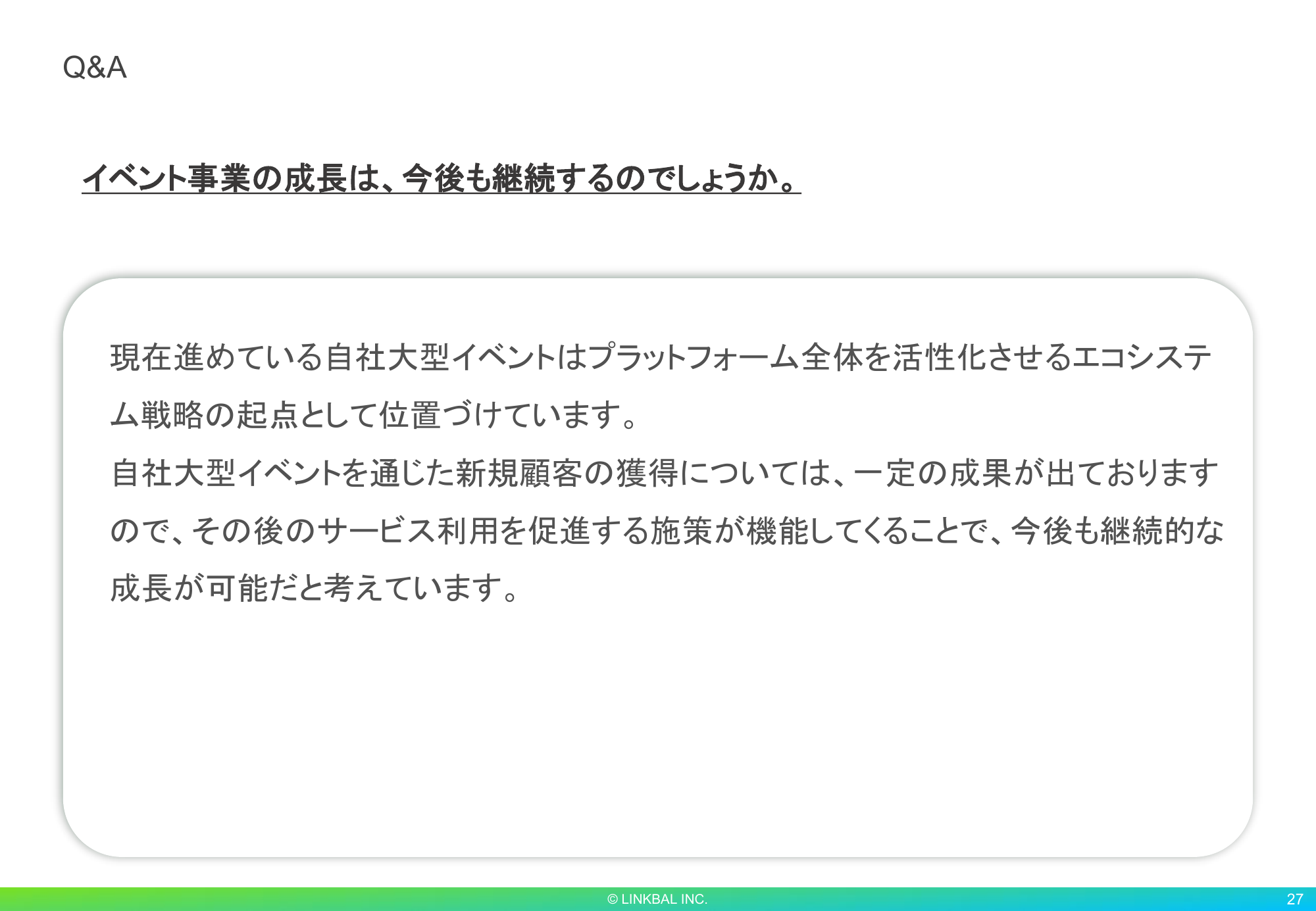 Q&A イベント事業の成長は、今後も継続するのでしょうか。